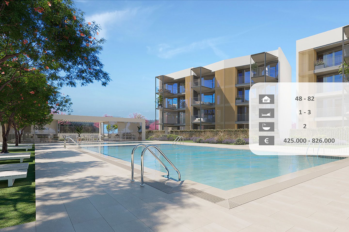 Diese moderne Wohnanlage mit vier energieeffizienten Gebäuden und insgesamt 36 Apartments entsteht in einem beleibten Badeort im Südwesten der Insel nur 15 Kilometer von Palma entfernt. Die Region bietet eine perfekte Infrastruktur und hat einen hohen Freizeitwert. Herrliche Strände, exklusive Yachthäfen, Golfplätze, Einkaufsmöglichkeiten und Sporteinrichtungen sind mit dem Auto schnell erreicht. Die Residenz, deren Fertigstellung für das 1. Trimester 2026 geplant ist, liegt nur 300 Meter vom wunderschönen Sandstrand des Ortes entfernt und bietet den Eigentümern schöne Gemeinschaftsbereiche mit Swimmingpool, Sonnenterrasse, Kinderpool, Veranstaltungsraum, Fitnessraum, Tiefgarage und Fahrradkeller. Die hellen Apartments bester Ausstattungsqualität und mit Wohnflächen zwischen 48 m² und 82 m² verfügen über 1-3 Schlafzimmern, 2 Bäder, (eines en suite), eine Ankleide, ein großzügiges Wohn-/Esszimmer, eine voll ausgestattete Küche mit Wirtschaftsraum sowie eine große Terrasse. Zu den Erdgeschoss-Wohnungen gehört ein kleiner Privatgarten.