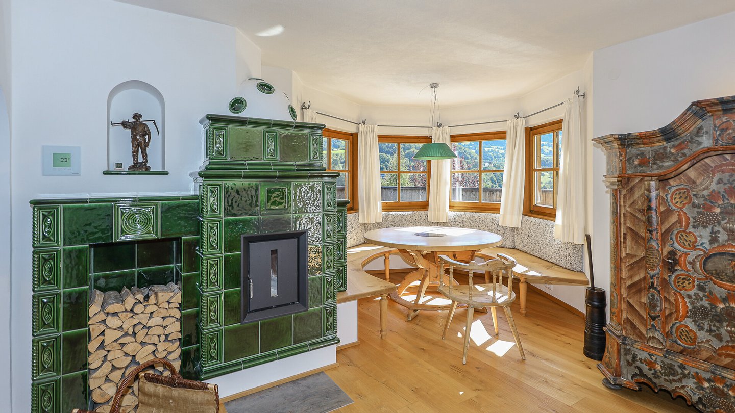 Das Haus verfügt über einen offenen Wohnraum mit Kamin, einen gemütlichen Salon mit Erker und Kachelofen und eine kleine Teeküche im Obergeschoss.
