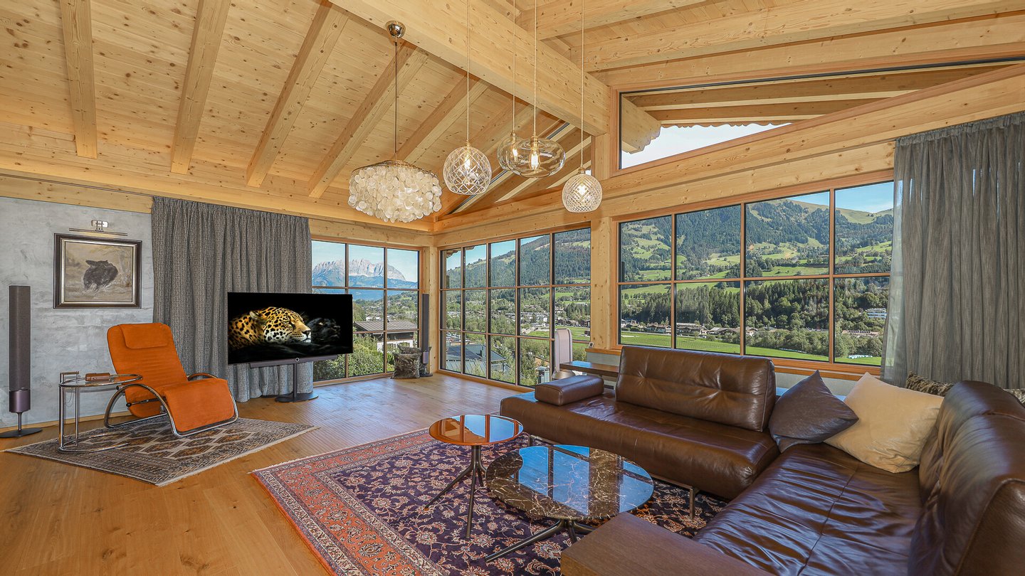 Vom Haus hat man einen unverbauten Ausblick auf den Wilden Kaiser, das Kitzbüheler Horn, die Bichlalm und auf die Südberge.