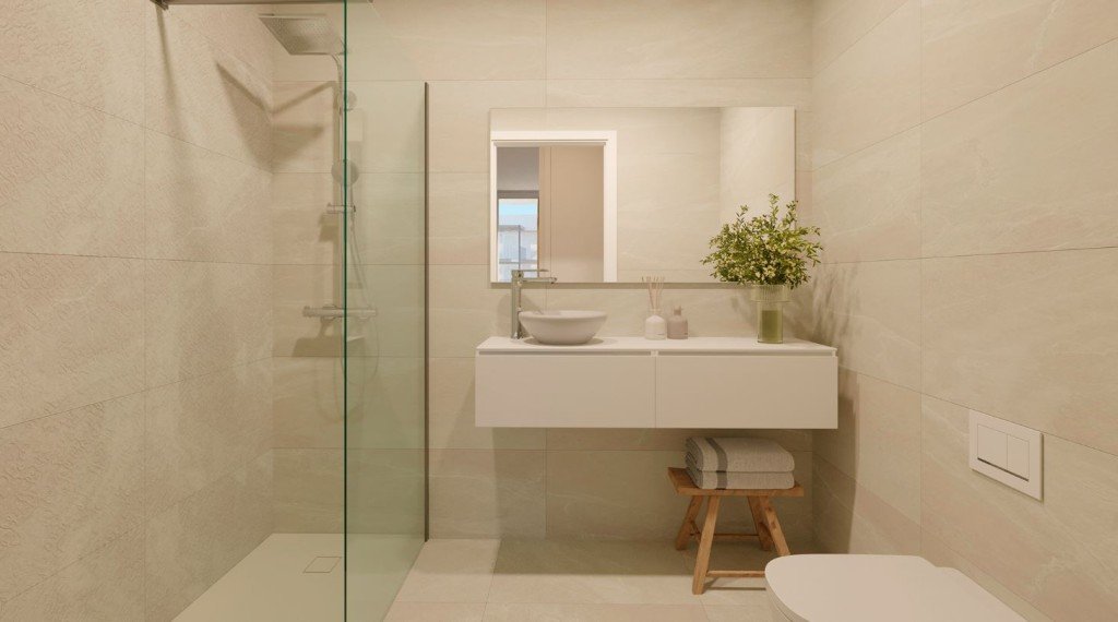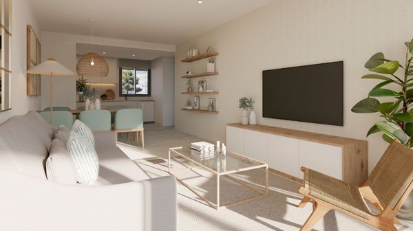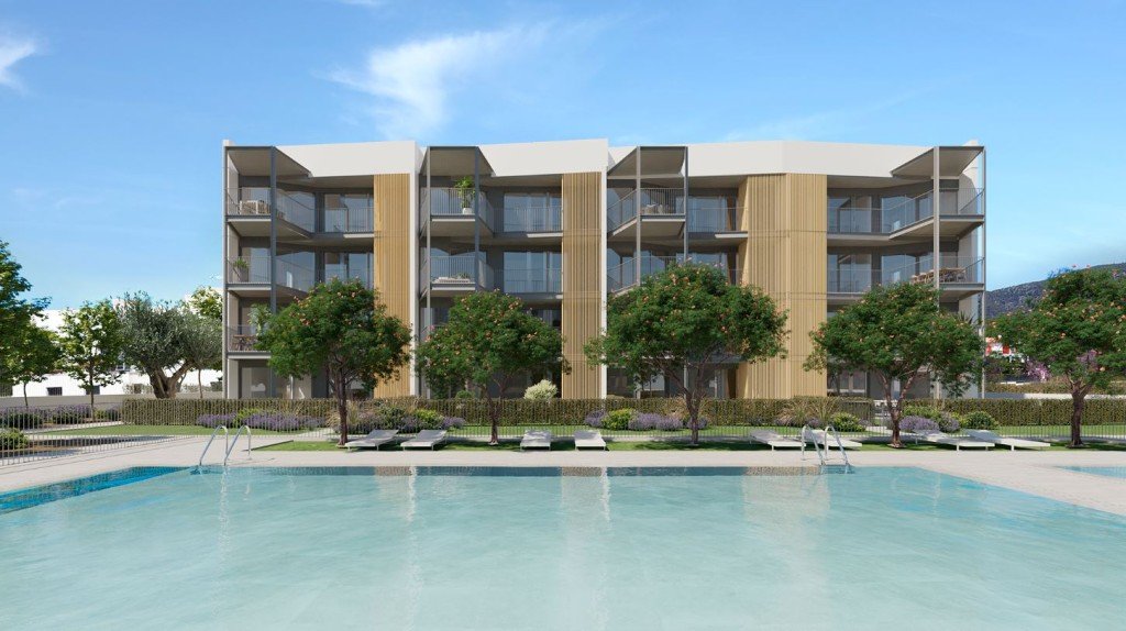 Alle Wohnungen verfügen alle über einen großzügigen Wohn-Essbereich, eine Küche, 1 bis 3 Schlafzimmer, 1 bis 2 Badezimmer und eine große Terrasse (mind. 14 m²) oder einen kleinen Garten (je nach Wohnungstyp). Die mediterran gestalteten Außenflächen bieten verschiedene Freibereiche und einen Gemeinschaftspool, der harmonisch in die begrünten Anlagen integriert ist.