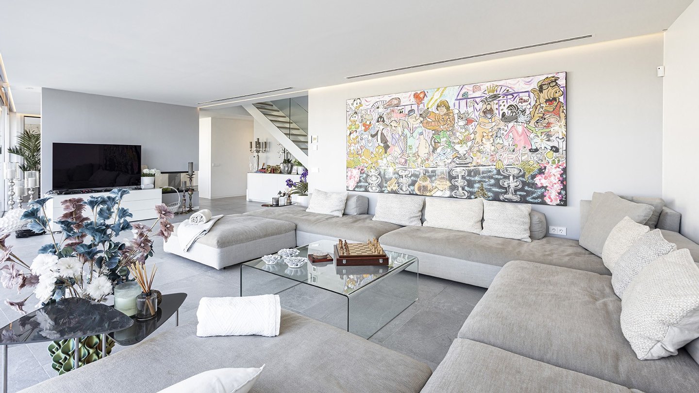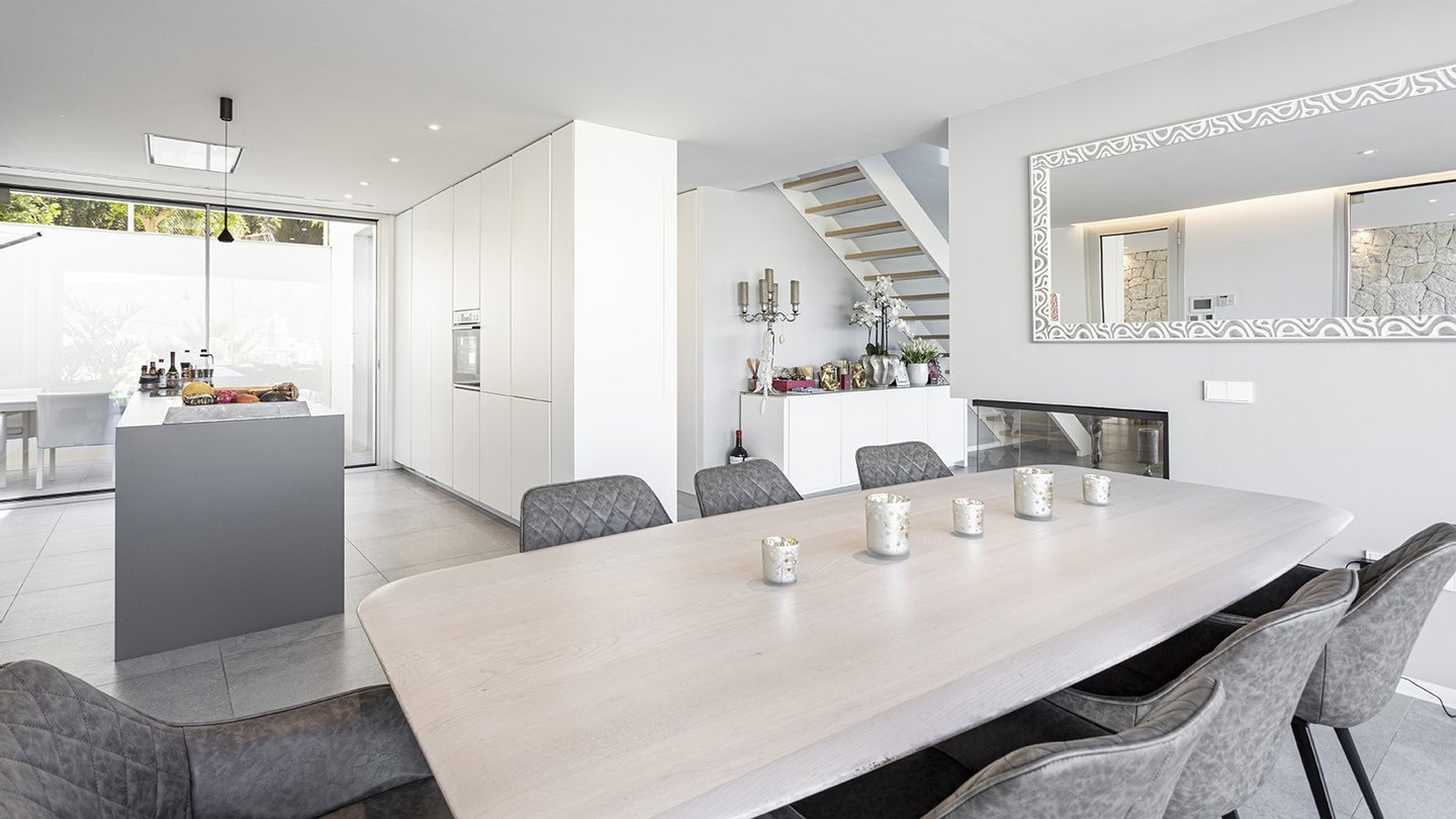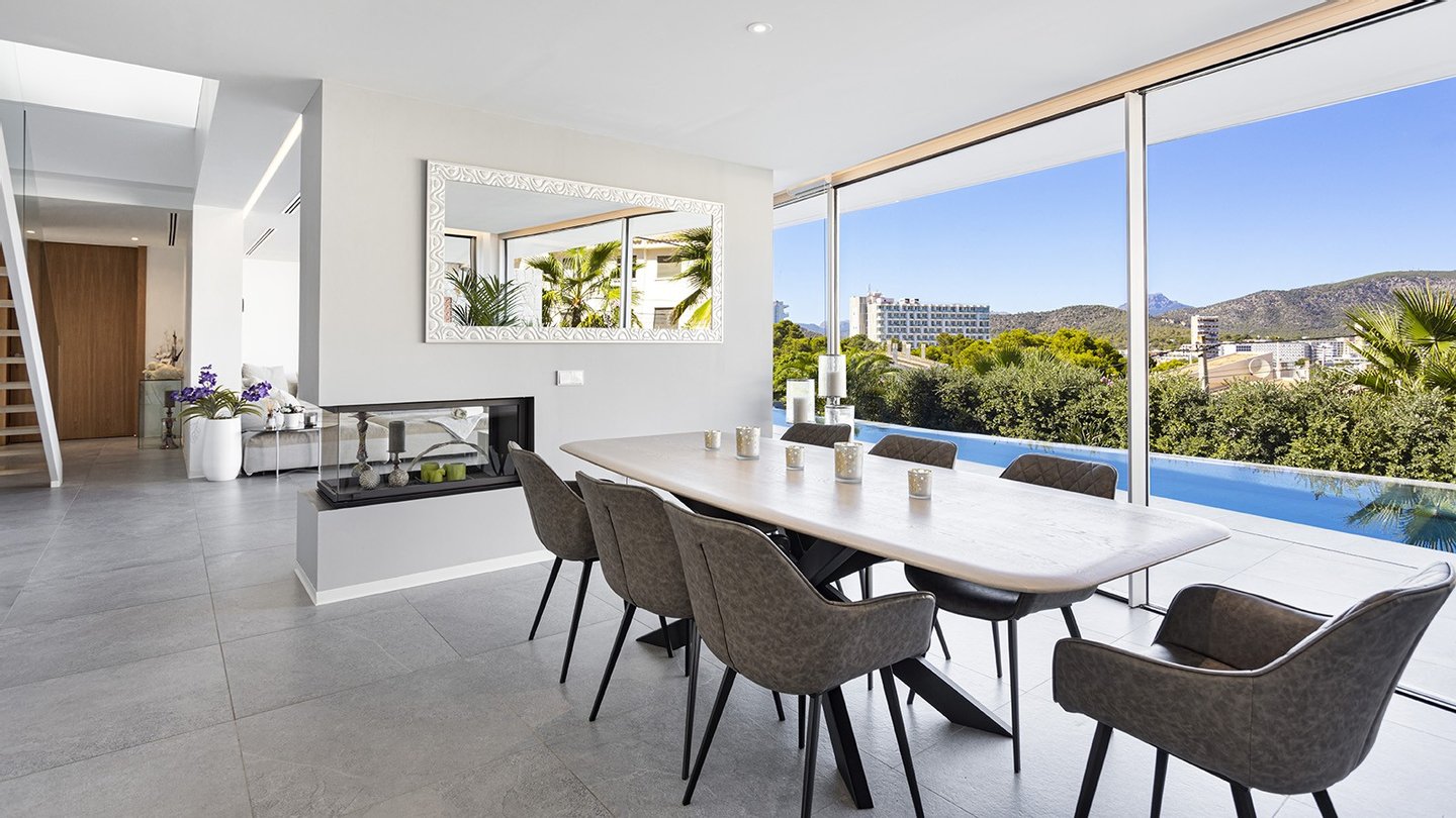 Diese hochwertige Villa auf einem ca. 1.300 m2 großen Grundstück beeindruckt durch eine bebaute Wohnfläche von 760 m2 (davon reine Wohnfläche 443 m2), verteilt auf fünf elegante Schlafzimmer mit jeweils en-suite Badezimmern. Das Anwesen überzeugt mit einem zeitgemäßen, architektonisch anspruchsvollen Design, modernster Ausstattung und einem unvergleichlichen Panoramablick auf die umliegende Landschaft und das Meer. Ob als Erstwohnsitz oder exklusive Ferienresidenz - diese Immobilie bietet eine gelungene Kombination aus Privatsphäre, Stil und Komfort in einer der begehrtesten Lagen Mallorcas.