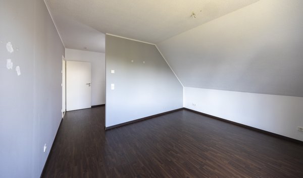 Im Dachgeschoss befinden sich drei gut geschnittene Schlafzimmer. Das Elternschlafzimmer ist besonders durchdacht konzipiert und bietet durch eine Zwischenwand eine klare Trennung zwischen Schlaf- und Ankleidebereich – ideal für zusätzlichen Stauraum und Privatsphäre.