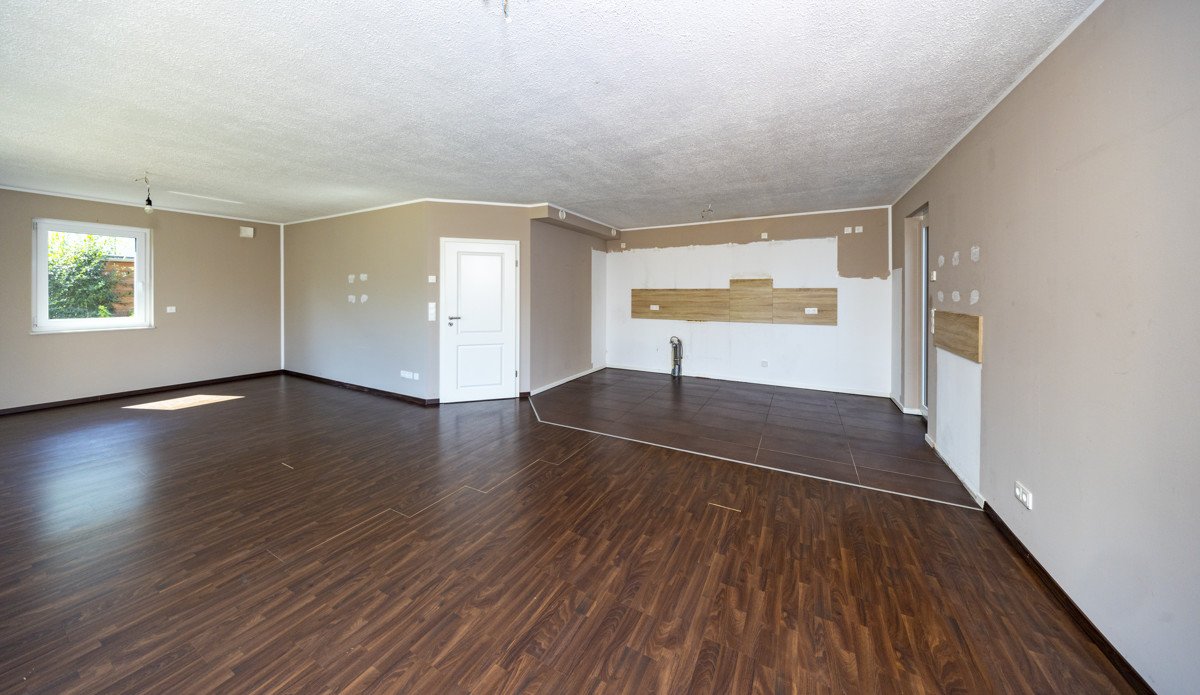Das Herzstück des Hauses ist der großzügige Wohn-, Ess- und Küchenbereich, der dank seiner offenen Raumgestaltung ein kommunikatives Wohnambiente schafft. Bodentiefe Fensterfronten durchfluten den Raum mit Tageslicht und eröffnen den direkten Zugang zur großzügigen Sonnenterrasse mit perfekter Südausrichtung – ein idealer Ort zum Entspannen und Genießen in den warmen Monaten.