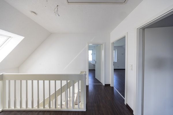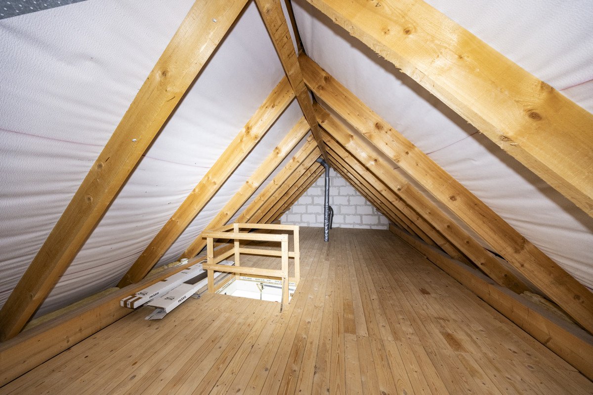 Vom Flur des Dachgeschosses aus gelangen Sie über eine praktische Speichertreppe in den Spitzboden des Hauses. Dieser bietet aufgrund des nicht vorhandenen Kellers eine wertvolle zusätzliche Stauraumlösung – ideal für saisonale Gegenstände, Kisten oder Sportequipment. Zusätzlich besteht für den Käufer die Möglichkeit, den Spitzboden – etwa durch den Einbau von Dachgauben – auszubauen und damit weiteres Potenzial des Hauses zu nutzen.