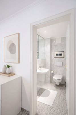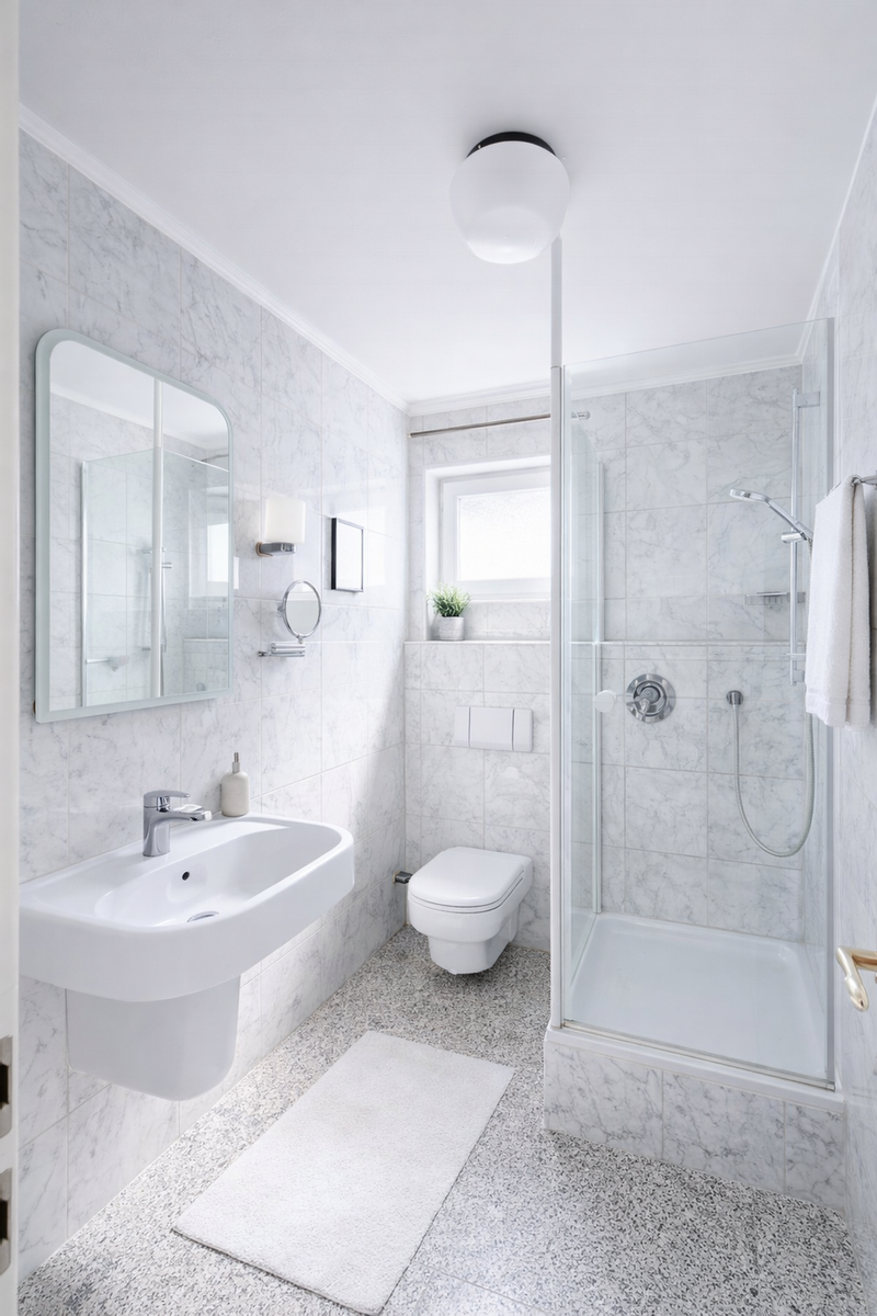 - Gäste-Bad mit Dusche, WC und Tageslicht