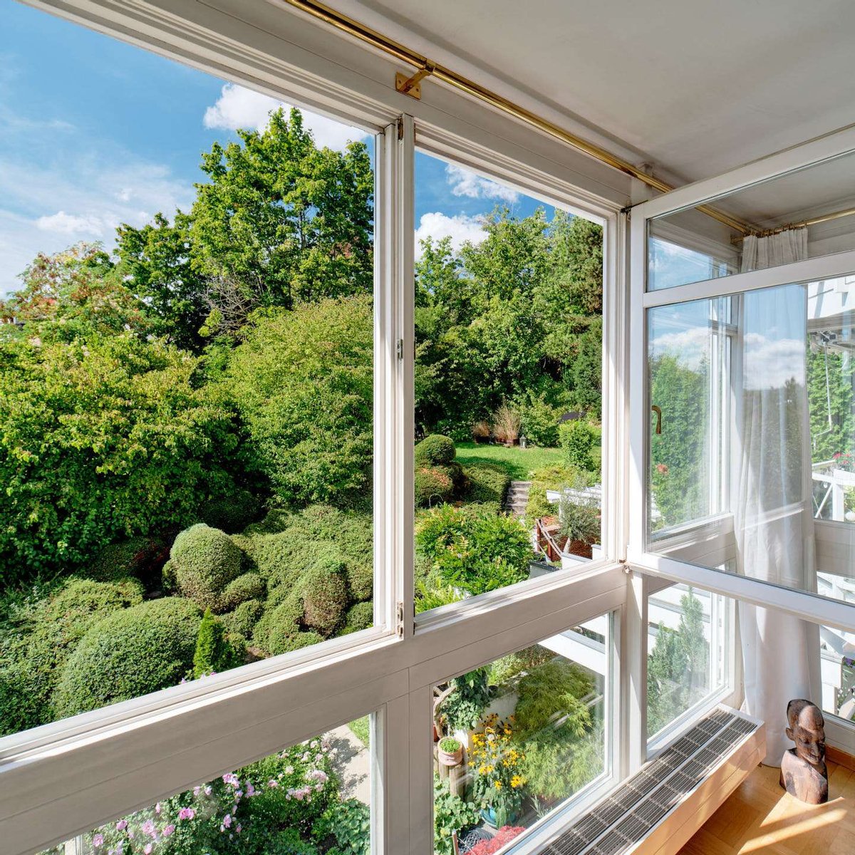 Bodentiefe Fenster sorgen für lichtdurchflutete Räume und eine angenehme Wohnatmosphäre.