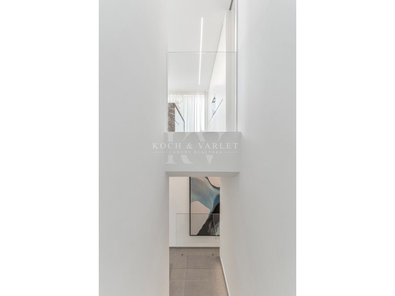 Sur un grand terrain de 1 605 m², la villa déploie 420 m² construits répartis sur deux étages et un sous-sol, reliés par un ascenseur moderne et un escalier intérieur design. Il dispose de 4 chambres à coucher et 5 salles de bains, dont la suite principale avec un walk-in et une salle de bain complète avec baignoire et douche. Plus de 125 m² de terrasses panoramiques entourent la propriété, intégrant l'intérieur à l'extérieur.