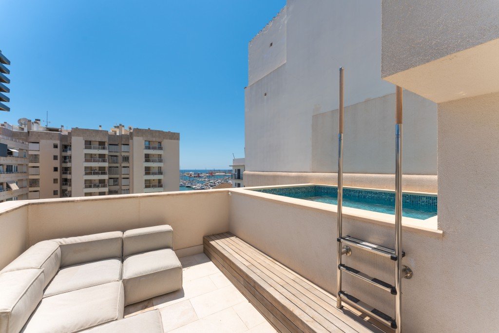 Das absolute Highlight ist die private Dachterrasse mit Meerblick bzw. Hafenblick. Eine stilvolle Lounge Area, ein eleganter Pool, eine Außendusche und maximale Privatsphäre lassen keine Wünsche offen.
