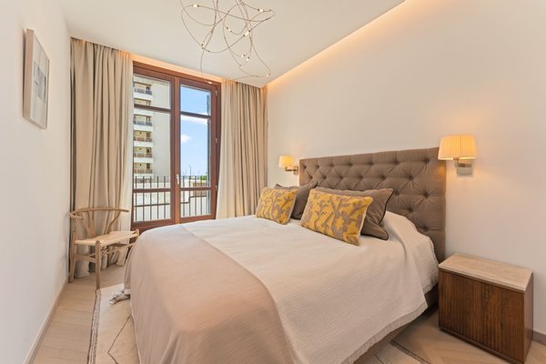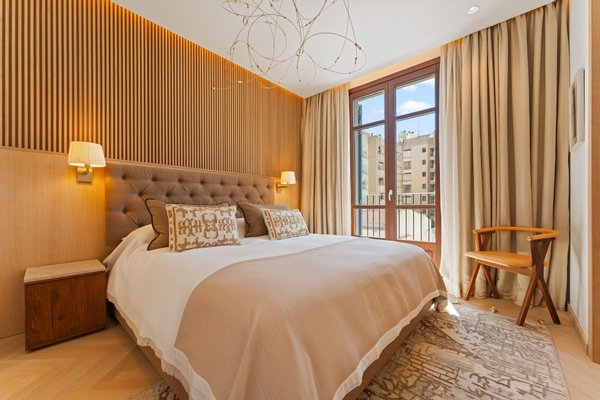 Insgesamt drei großzügige Schlafzimmer, alle mit Bad en Suite, bieten höchsten Komfort. Zwei davon befinden sich im ersten Obergeschoss mit Zugang zu einem privaten Balkon. Die gesamte zweite Etage ist der imposanten Master-Suite vorbehalten: mit begehbarem Ankleidezimmer, modernem Bad, lichtdurchflutetem Wohnbereich mit Kamin und privatem Balkon.