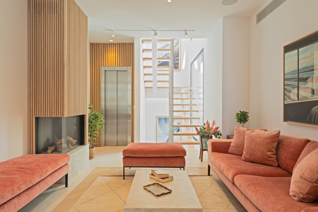 Das Haus erstreckt sich über vier Etagen plus Dachterrasse mit Pool – alle bequem erreichbar über einen privaten Lift. Ein diskreter Luxus, der Komfort auf allen Ebenen garantiert.