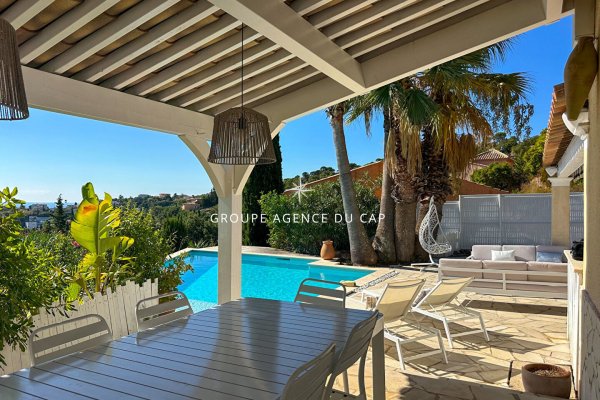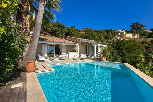 In Les Issambres empfängt Sie diese charmante provenzalische Villa mit einem herrlichen Meerblick vom Eingang aus. Die authentische Architektur, die durch hohe Decken und schöne Sichtbalken hervorgehoben wird, schafft eine warme und elegante Atmosphäre. Auf einer Ebene bietet es ein großes, helles Wohnzimmer mit Esszimmer, eine separate Küche und drei Schlafzimmer, darunter eine Master-Suite. Jedes Zimmer hat einen direkten Zugang zum Außenbereich und lädt Sie ein, die Terrasse und den Pool in vollen Zügen zu genießen. Die nach Südosten ausgerichtete Villa ist von morgens bis abends in Licht getaucht und bietet den ganzen Tag über sonnige Momente. Es verfügt auch über hochwertige Annehmlichkeiten wie Klimaanlage, eine große Garage und einen Kriechkeller, die Komfort und Funktionalität für den Alltag bieten.