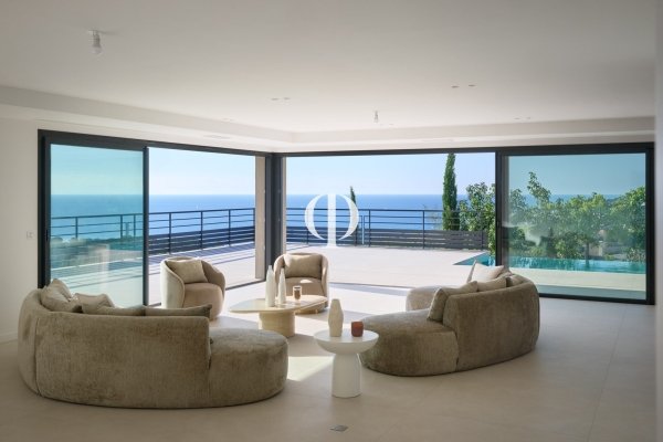 Auf den Hügeln von Les Issambres verkörpert diese neue, 538 m² große, moderne Villa die ganze Eleganz und Raffinesse der Côte d'Azur. Erbaut auf einem 1391 m² großen Grundstück, besticht es durch sein minimalistisches Design, klare architektonische Linien und einen herrlichen Meerblick. Beim Betreten der Villa offenbart sich großzügige Volumen, die dank großer Öffnungen, die die Wohnräume auf natürliche Weise nach draußen erweitern, lichtdurchflutet sind. Das große Wohnzimmer öffnet sich auf eine große Terrasse, die von einem Infinity-Pool dominiert wird, der mit dem Horizont zu verschmelzen scheint. Jede Ebene ist mit einem Aufzug erreichbar, der Komfort und Fluidität im Alltag garantiert. Die Unterkunft bietet 7 geräumige Suiten, jede mit eigenem Bad und Zugang zu sonnenverwöhnten Außenbereichen. Die Wohnräume gehen nahtlos in die Terrassen über und sorgen für eine perfekte Kontinuität zwischen Innen und Außen. Im Wellnessbereich verfügt die Villa auch über einen Entspannungsbereich mit einem Kinoraum und einem Fitnessraum. Eine geräumige Garage vervollständigt das Anwesen, die für mehrere Fahrzeuge ausgelegt ist. Eine außergewöhnliche Residenz, in der zeitgenössischer Luxus auf mediterranen Komfort trifft und ein einzigartiges Wohnumfeld mit Blick auf das Meer bietet.