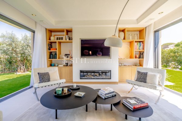 Villa zum Verkauf in Sainte-Maxime. Nur einen Steinwurf vom Stadtzentrum und den Stränden entfernt, ist diese atemberaubende, neue, zeitgenössische Villa mit hochwertigen Materialien gebaut. Es verfügt über: eine Eingangshalle, eine Garderobe und ein Gäste-WC, ein geräumiges Wohnzimmer mit Zugang zu einer überdachten Terrasse und eine voll ausgestattete offene Küche. Drei Schlafzimmer mit jeweils Badezimmern, Toiletten und Ankleidezimmern. Ein herrlicher Weinkeller, eine Waschküche und eine Garage vervollständigen diesen komfortablen Wohnraum. Ein Swimmingpool wertet den wunderschön angelegten Garten auf. Ein Muss!
