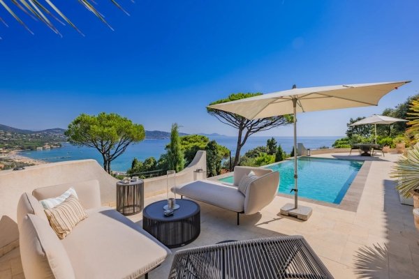 Diese Villa befindet sich in dominanter Lage in einem der begehrtesten Viertel von Sainte-Maxime und bietet einen atemberaubenden Panoramablick auf das Meer und den Strand von Nartelle.