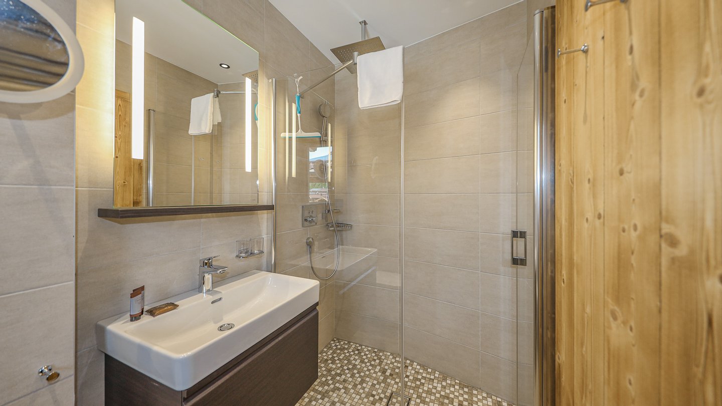 Das Chalet befindet sich im oberen Bereich der Anlage und erstreckt sich über drei Etagen. Es bietet viel Platz für Familien oder Gruppen, kombiniert mit einer durchdachten Raumaufteilung und hochwertiger Innenausstattung.