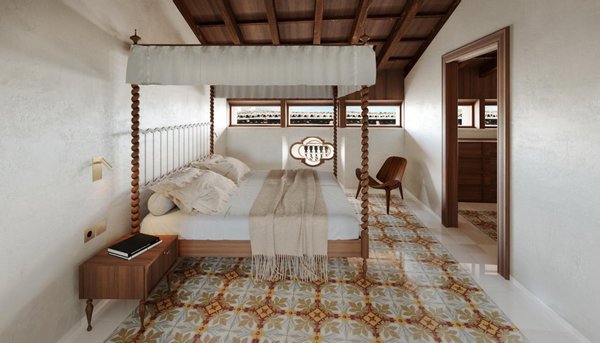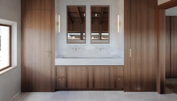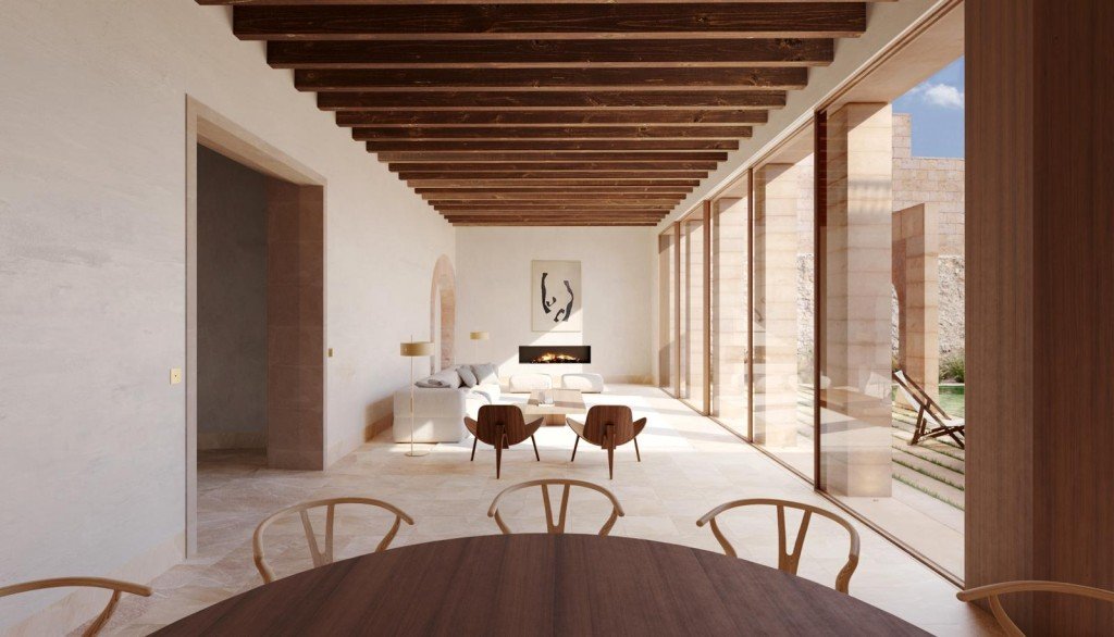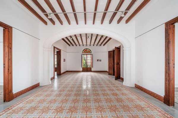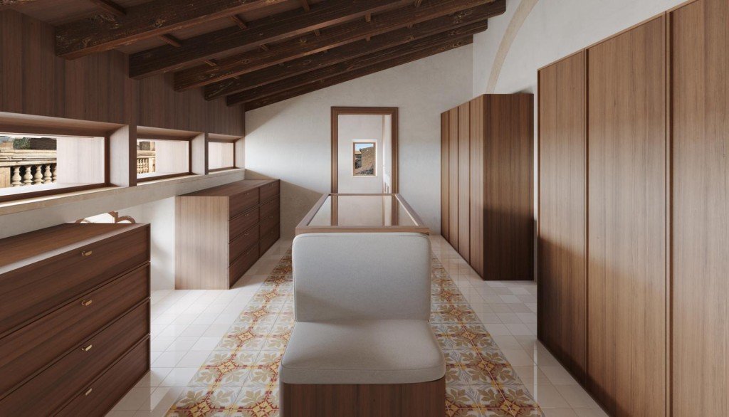 Die Pläne sehen ein geräumiges dreistöckiges Haus mit rund 630 m² vor, das über fünf Schlafzimmer mit eigenem Bad, einen privaten Aufzug und helle, offene Wohnbereiche verfügt. Das Projekt wurde mit Blick auf Komfort entworfen und umfasst Fußbodenheizung, Klimaanlage und hohe Decken, von denen einige gewölbt sind und bis zu 4,5 Meter hoch sind.