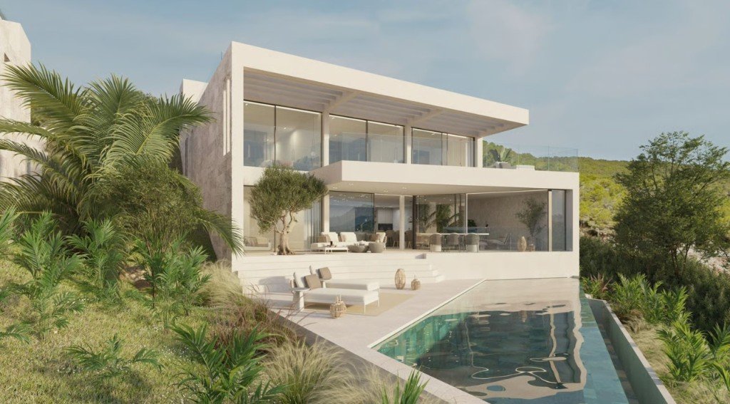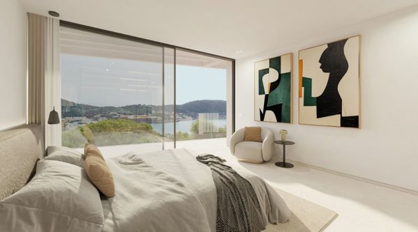Erhöht über dem begehrten Küstenort Camp de Mar erhebt sich diese neu erbaute Design-Villa als architektonisches Juwel auf einem 1.117 m² großen Hanggrundstück. Mit Panoramablicken, die sich über das Tal, die umliegenden Berge und das Meer