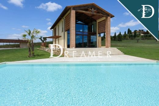 Exklusive Villa zum Verkauf in den Hügeln von Montaione, nur 20 Minuten von San Gimignano und eine Stunde von Florenz und Siena entfernt. Diese Immobilie, die mit hochwertigen Materialien entworfen wurde, umfasst ...mehr lesen