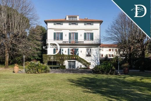Villa mit Garten zum Verkauf am Stadtrand von Prato und nur wenige Kilometer von Florenz entfernt. Das Anwesen von ca. 550 qm, mit 4 Schlafzimmern und 6 Bädern, erstreckt sich über drei Ebenen mit bewohnbarem Dachboden und Terrasse. Es ist von einem 4.000 m² großen privaten Garten mit gepflasterter Terrasse umgeben, ideal, um Momente der Entspannung in absoluter Privatsphäre zu genießen. Die Villa bietet eine raffinierte Umgebung von großer Gastfreundschaft, in der die Auswahl der Einrichtung und die Auswahl der Oberflächen an die Eleganz des neoklassizistischen Geschmacks erinnern.