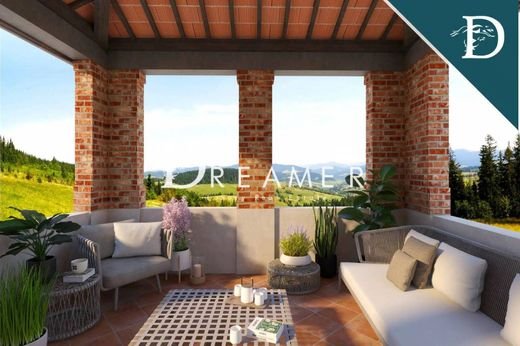 Das Grundstück mit eigenem Eingang umfasst die beiden oberen Stockwerke der Villa und eine Panoramaloggia. Die Wohnung im Erdgeschoss, die sich durch eine Höhe von etwa 4 Metern im Wohnbereich auszeichnet, verfügt über ein doppelstöckiges Wohnzimmer mit Kamin und einen einzigartigen Blick auf das Grün der Ersten Florentinischen Hügel. Außerdem gibt es zwei Küchen mit Speisezimmer, ein Arbeitszimmer, 8 Schlafzimmer und 4 Badezimmer. Eine elegante Wendeltreppe führt in den Dachboden, der 10 Zimmer und 2 Badezimmer sowie eine kleine Terrasse umfasst. Die 20 Quadratmeter große Panoramaloggia befindet sich im obersten Stockwerk. Sie dominiert die umliegenden Hügel und bietet einen einzigartigen Blick auf die Denkmäler von Florenz.