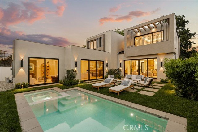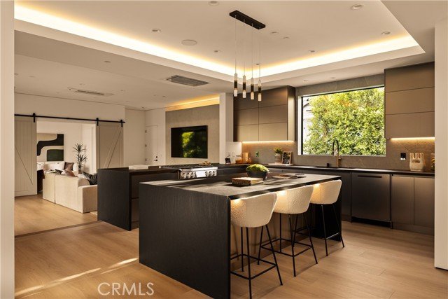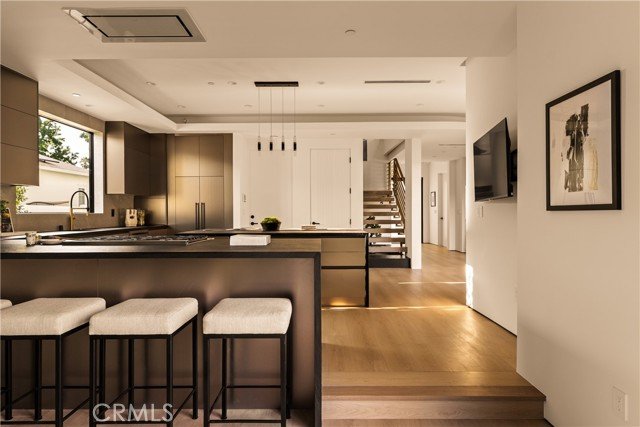 Eingebettet in das erstklassige Encino bietet dieses neu gebaute, zeitgenössisch-moderne Anwesen, das von einem Luxusbauherrn mit einem Vermächtnis seit 1993 gefertigt wurde, 5 Schlafzimmer, 5,5 Badezimmer und 3.143 m² raffinierte Wohnfläche auf mehr als 5.500 m² privatem Grundstück. Die Residenz wurde sorgfältig neu gestaltet und verbindet nahtlos anspruchsvolles Design mit modernster Technologie. Sein markantes Äußeres wird durch eine kuratierte Landschaftsgestaltung aufgewertet, die durch einen großen Olivenbaum hervorgehoben wird, der den Vorgarten verankert. Im Inneren beeindruckt die großzügige Aufteilung sowohl mit einem Wohnzimmer für Entertainer als auch mit einem separaten Familienzimmer. Ein Gaskamin 72 aus Porzellan und toskanischem Putz verankert den Raum, ergänzt durch einen eingebauten Fernseher. Die Küche des Küchenchefs ist ein Prunkstück in Sachen Stil und Funktion, mit einer großen Insel und Halbinsel, maßgefertigten Schränken, einer raumhohen Speisekammer und erstklassigen Geräten von Wolf, Signature und Fisher & Paykel. Schlanke Porzellantheken, ein passender Spritzschutz und eine Spüle unter der Montage bringen das Design mit müheloser Eleganz zusammen. Die Hauptsuite ist ein luxuriöser Rückzugsort mit Balkon und einem individuell gestalteten begehbaren Kleiderschrank mit Einbauten, LED-Spiegeln und einem Schminktisch. Fenster mit elektrischer Tönungstechnologie bieten sofortige Privatsphäre auf Knopfdruck. Spa-ähnliche Badezimmer werten den Alltag mit Waschtischen aus Holz, strukturierten Porzellanduschen und einer raffinierten Mischung aus mattschwarzen und gebürsteten Goldoberflächen auf. Hoch aufragende Ficus-Hecken sorgen für Privatsphäre, während Stern-Jasmin, Buchsbaum und Bambus Akzente eine ruhige Kulisse schaffen. Der Hinterhof ist ein Traum für Entertainer, mit einem weißen Kieselsteinpool und einem Spa mit vollständiger Automatisierung, einer kaskadierenden Terrasse und Spa-Düsen. Durchdachte Details - darunter App-gesteuerte Sonos-Lautsprecher, ein Überwachungssystem und eine Umgebungsbeleuchtung - runden das Outdoor-Erlebnis ab. Zu den weiteren Highlights gehören ein Homeoffice, ein Weinkeller, eine komplette Wäscherei mit Samsung-Waschmaschine/Trockner und drei installierte Fernseher. Die Residenz ist komplett mit modernen Annehmlichkeiten wie intelligenter Lutron-Beleuchtung, Nest-Thermostaten, zwei Durchlauferhitzern, einem automatischen Sprinklersystem und ADT-Sicherheit mit Bewegungs- und Feuchtigkeitssensoren ausgestattet. Perfekt gelegen im erstklassigen Encino mit einfachem Zugang zu den 101 und 405, den Restaurants und Boutiquen des Ventura Boulevard, dem Village und der Topanga Westfield Mall, dem Lake Balboa und dem Balboa Golfplatz, bietet dieses Haus die ultimative Mischung aus Luxus, Komfort und Bequemlichkeit - geschaffen für elegante Unterhaltung und tägliches Leben.