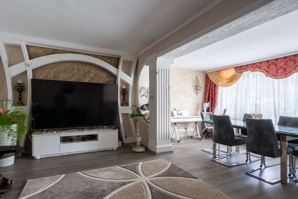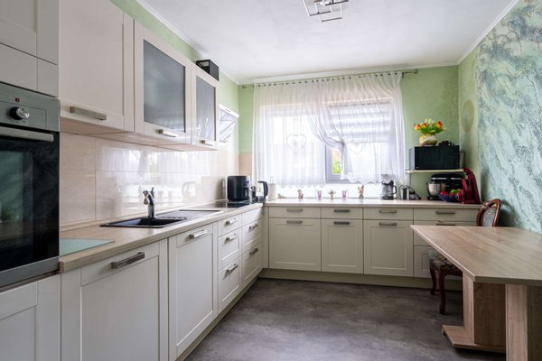 Das Herzstück des Hauses bildet das großzügig geschnittene Wohnzimmer, das dank großer Fensterflächen mit viel Tageslicht erfüllt ist und einen schönen Blick ins Grüne bietet. Hier lässt sich nicht nur entspannt wohnen, sondern auch eine gemütliche Essecke einrichten. Direkt angrenzend lädt der helle Wintergarten zum Verweilen ein – ein geschützter Raum, der den Garten optisch ins Haus holt und besonders in der Übergangszeit zusätzlichen Wohnkomfort schafft. Die Küche ist mit einer modernen Einbauküche ausgestattet und überzeugt durch ihre Funktionalität. Die angrenzenden Räume bieten als Schlaf-, Kinder- oder Arbeitszimmer vielfältige Gestaltungsmöglichkeiten für unterschiedliche Lebenssituationen. Das Badezimmer ist in zeitlosem Weiß-Schwarz gehalten und mit Dusche, Badewanne, WC und Waschtisch vollständig ausgestattet. Über eine Treppe im Flur gelangen Sie in das bereits zum Ausbau vorbereitete Dachgeschoss, das weiteren Raum für individuelle Nutzungsideen bereithält. Im Untergeschoss befinden sich Kellerräume, die reichlich Platz für Vorräte, Werkstatt oder Lagerfläche bieten.