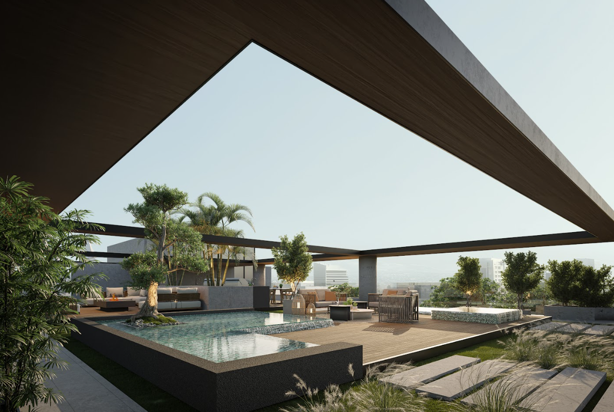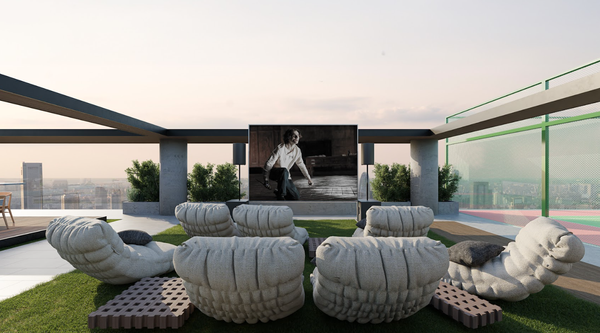 Beginnen wir mit dem Infinity Pool, der sowohl Erwachsenen als auch Kindern eine erfrischende Abkühlung bietet. Weiter geht es zum Rooftop Open Cinema, wo Sie unter freiem Himmel Filme und Shows genießen können. Die BBQ-Bereiche sind ideal für gesellige Zusammenkünfte im Freien, während der beruhigende Rückzugsort mit Wasserdekorationen und Lagerfeuer eine entspannende Atmosphäre schafft.