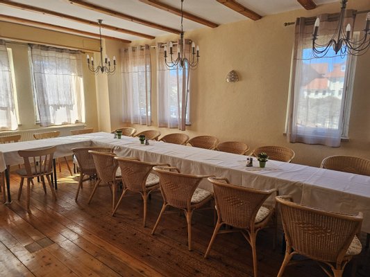 Vorhanden ist zudem noch eine Gastterrasse, in der oberen Etage befinden sich ein Veranstaltungsraum und die Toiletten.