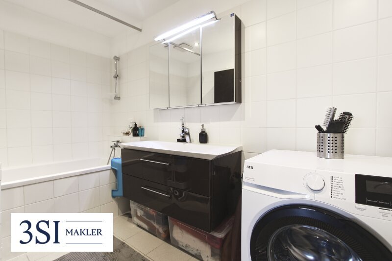 - Badezimmer mit Badewanne und Waschmaschinenanschluss
