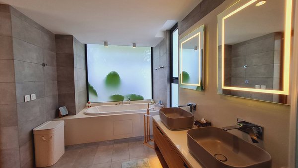 Die vom renommierten Architekten Stefan Antoni entworfene Villa erstreckt sich über 437 m² Innenfläche, die durch 77 m² überdachte Terrassen ergänzt wird. Auf einem weitläufigen, 1121 m² großen bewaldeten Grundstück gelegen, vereint die Residenz eine harmonische Verschmelzung von Stein- und Holzelementen und verleiht der eleganten Architektur ein modernes Flair. Die voll ausgestattete Küche verbindet sich nahtlos mit den geräumigen Wohn- und Essbereichen und schafft einen idealen Gemeinschaftsraum für einen unvergesslichen Familienurlaub.