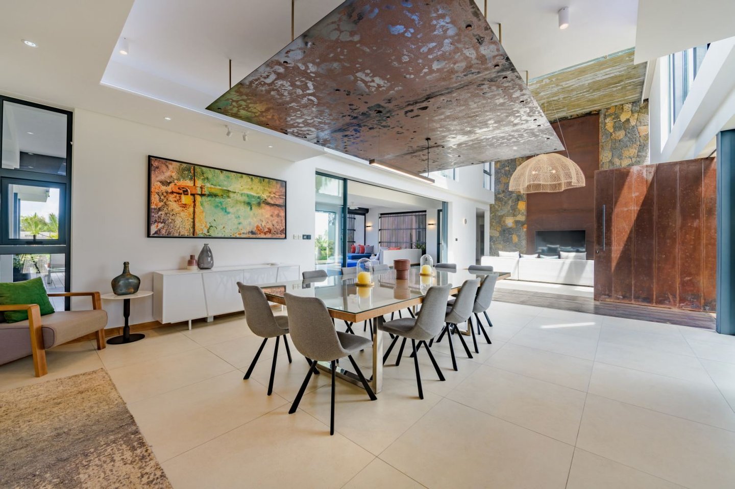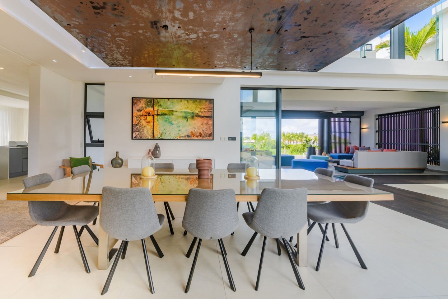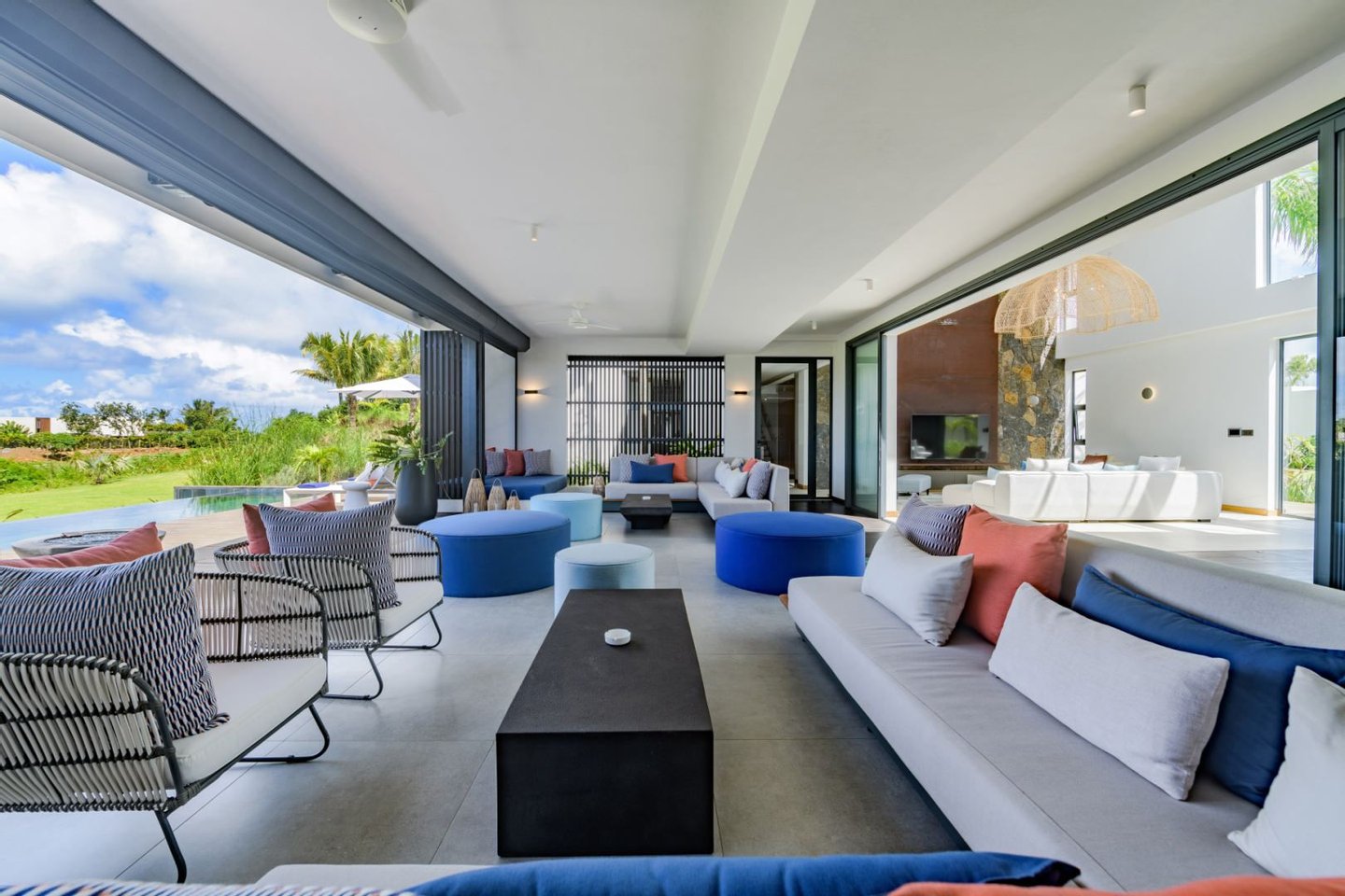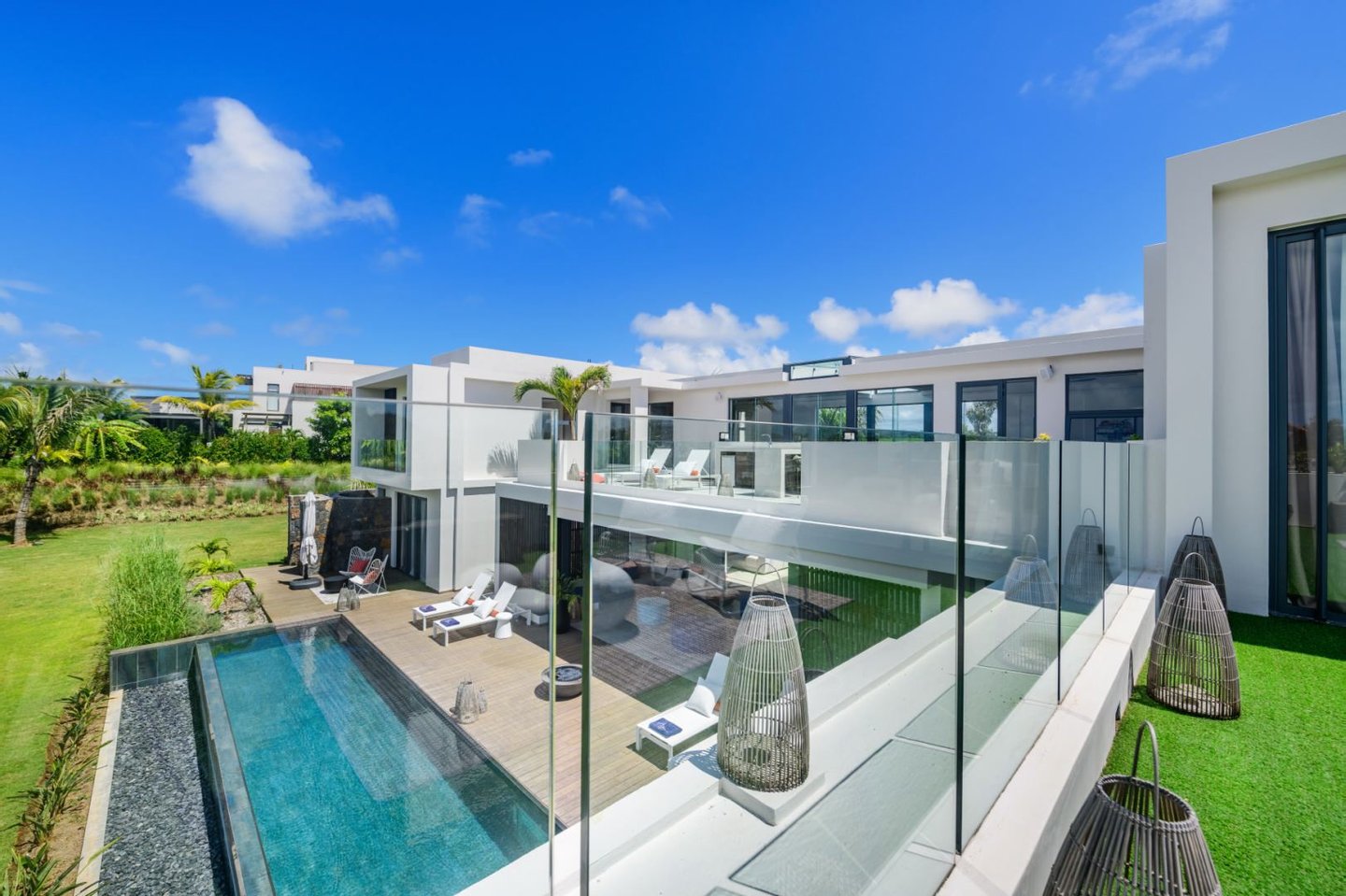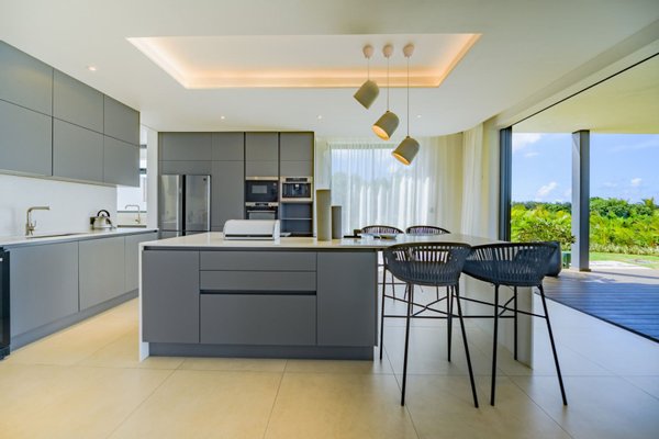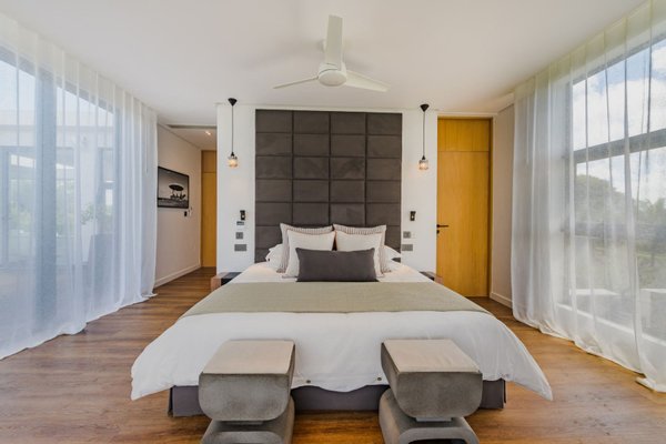Die Villa, die mit moderner und eleganter Architektur gestaltet wurde, bietet geräumige und helle Wohnräume mit hochwertigen Oberflächen und hochwertigen Annehmlichkeiten. Große Fenster durchfluten die Räume mit Tageslicht und bieten einen Panoramablick auf den umliegenden tropischen Garten.