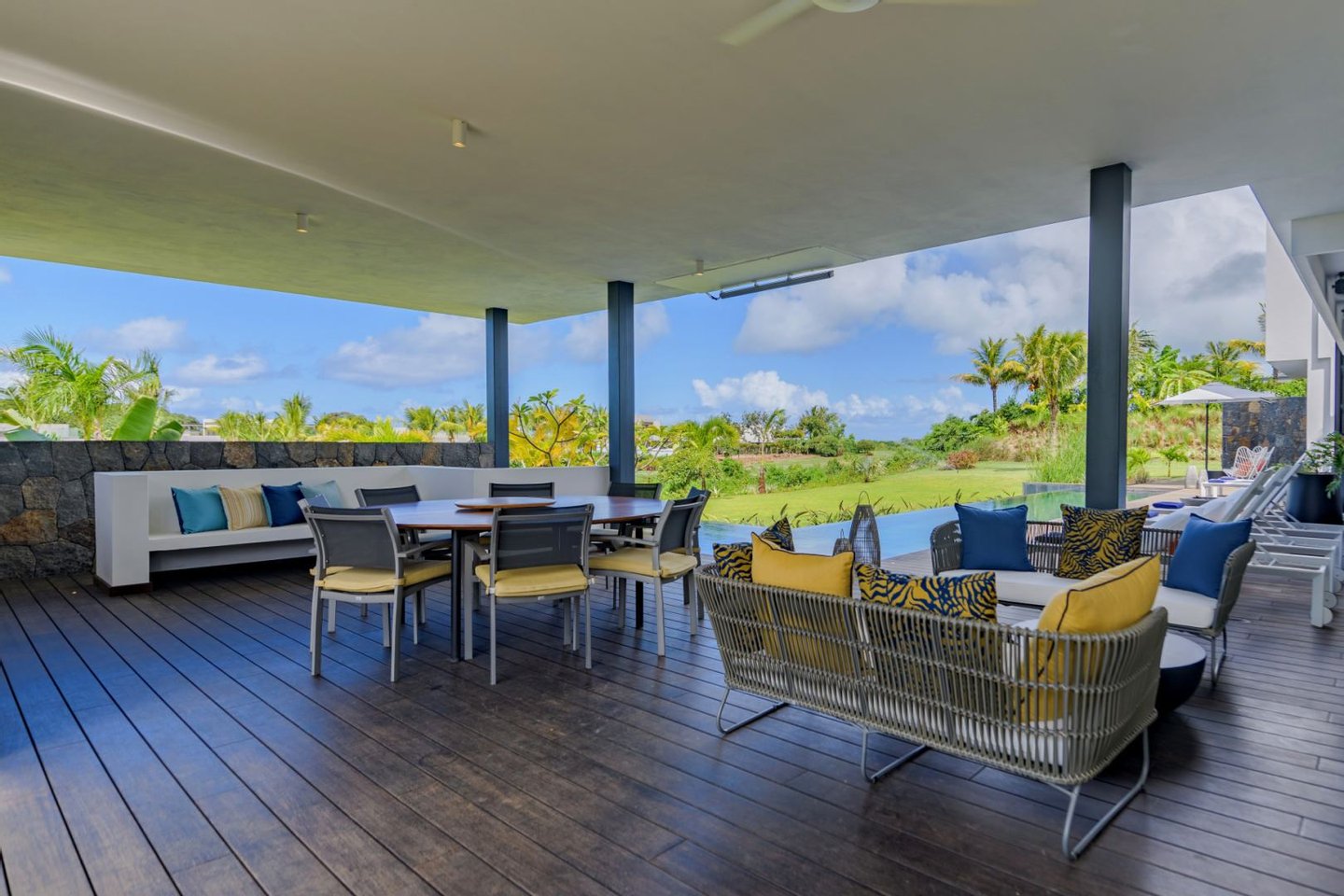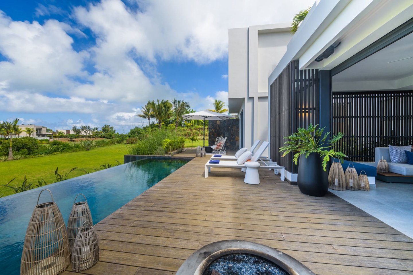 Entdecken Sie diese atemberaubende, moderne Villa mit 5 Schlafzimmern, die im Anahita Golf Estate zum Verkauf steht. Eingebettet im Herzen einer üppigen tropischen Landschaft bietet diese exklusive Residenz einen anspruchsvollen Lebensstil in einem der prestigeträchtigsten Anwesen auf Mauritius.