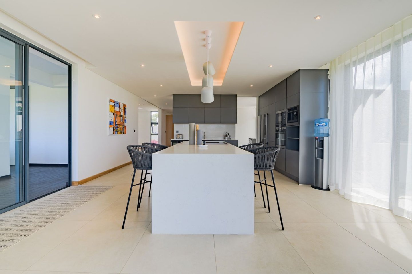 Die moderne und voll ausgestattete Küche ist eine Oase für kulinarische Enthusiasten und verfügt über hochwertige Geräte und stilvolle Oberflächen. Die fünf Schlafzimmer verfügen alle über ein eigenes Bad und bieten komfortable und entspannende Schlafplätze für die ganze Familie.