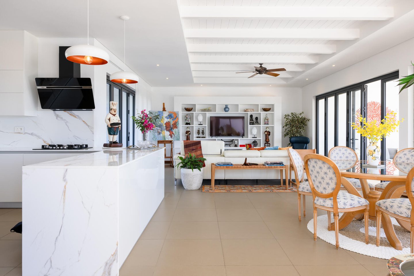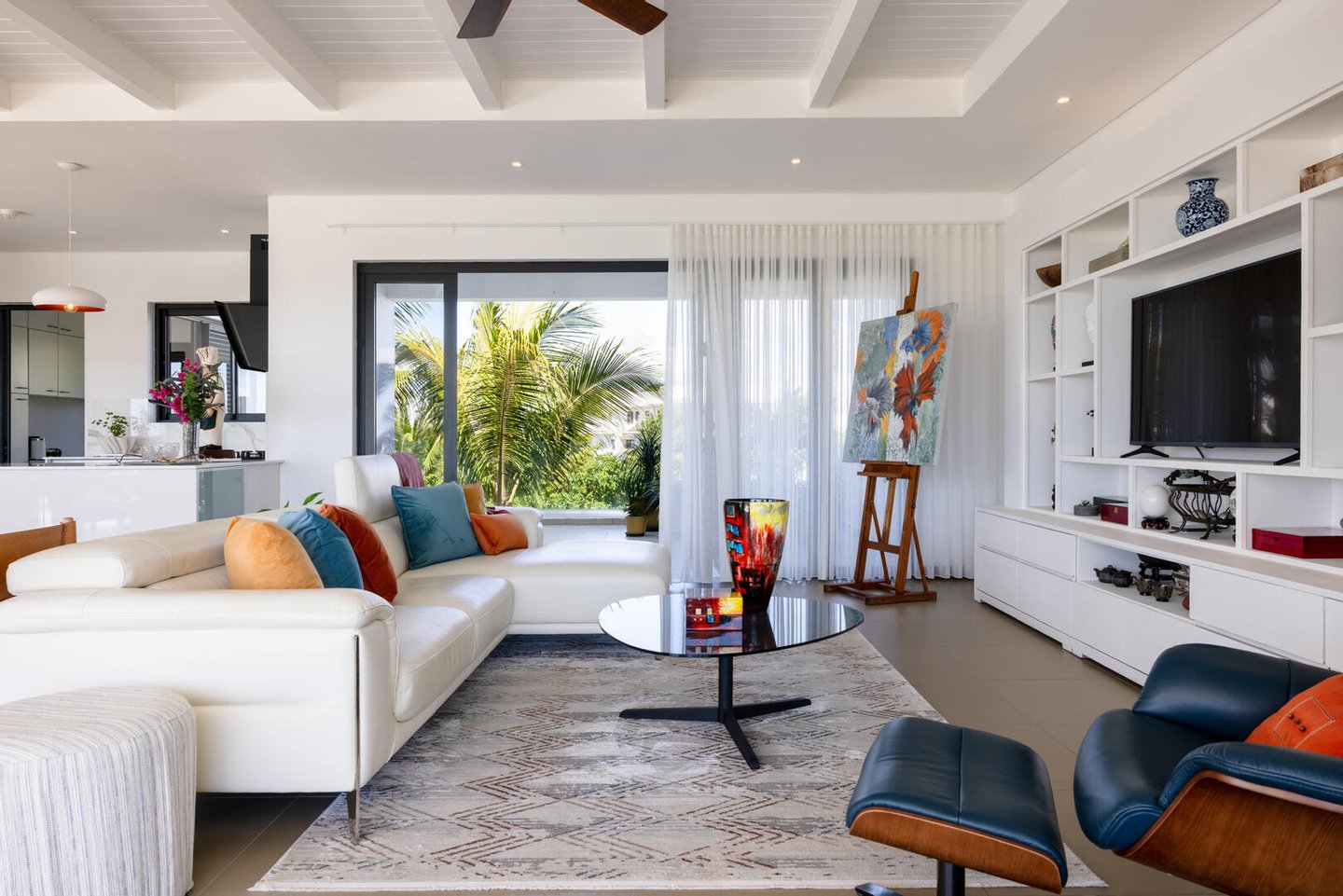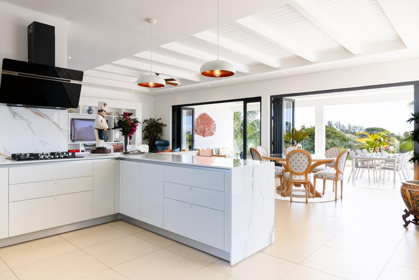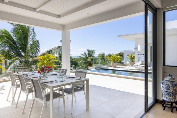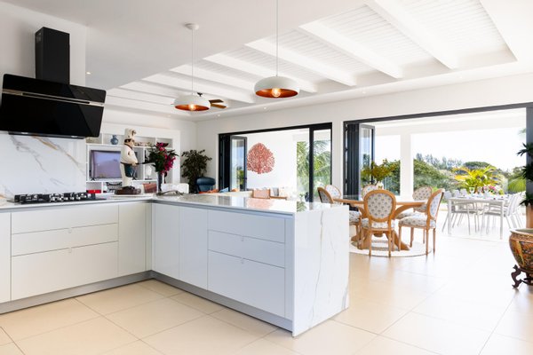 Perfekt positioniert für Privatsphäre und Ruhe, ist dieses Haus der Traum eines jeden Entertainers. Eine neue, offene Küche im Scavolini-Design integriert sich nahtlos in den Ess- und Wohnbereich, der alle leicht entweder auf einen charmanten hinteren Innenhof oder die weitläufige vordere Terrasse übergeht. Egal, ob Sie einen Sundowner-Abend veranstalten oder einen ruhigen Morgenkaffee genießen, die tropische Umgebung bietet die perfekte Kulisse.