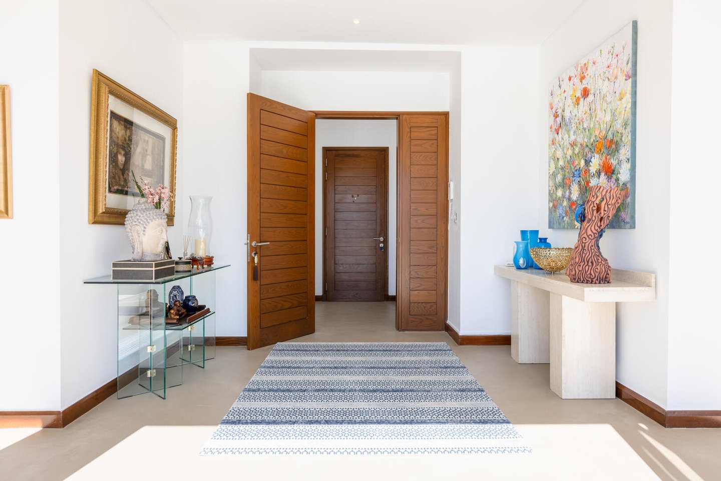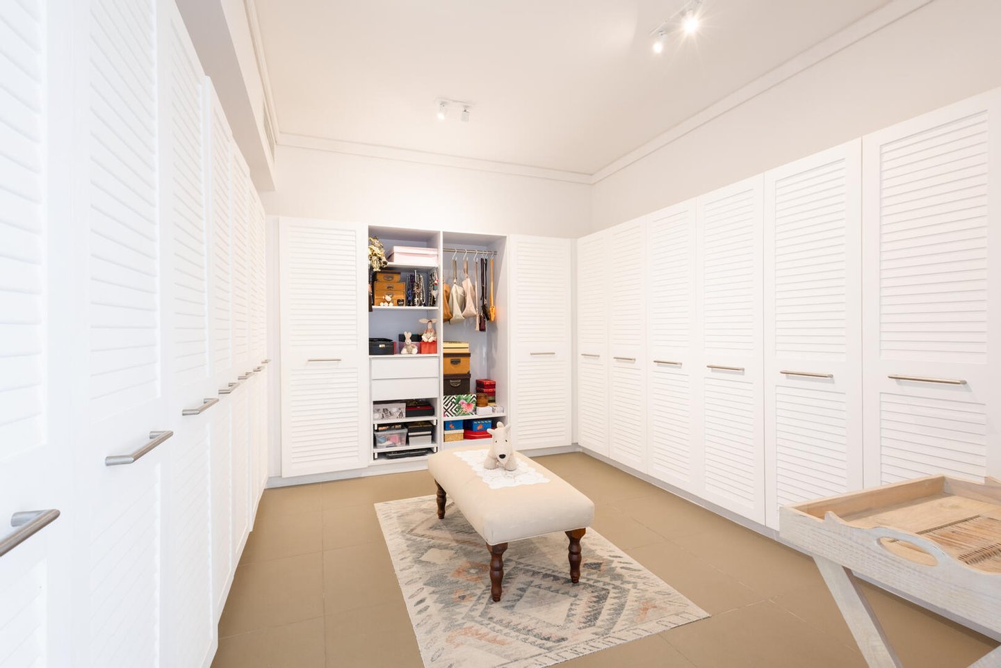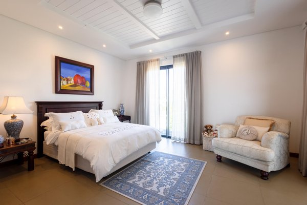 Eine großzügige begehbare Speisekammer, eine separate Vorbereitungsküche und eine voll ausgestattete Waschküche sorgen dafür, dass alle praktischen Bedürfnisse erfüllt werden. Die drei geräumigen Schlafzimmer sind geschmackvoll eingerichtet und die Badezimmer sind gut ausgestattet. Die Master-Suite verfügt über einen direkten Zugang zur Terrasse, ein größeres Ankleidezimmer als üblich und einen ruhigen Blick über den Pool.