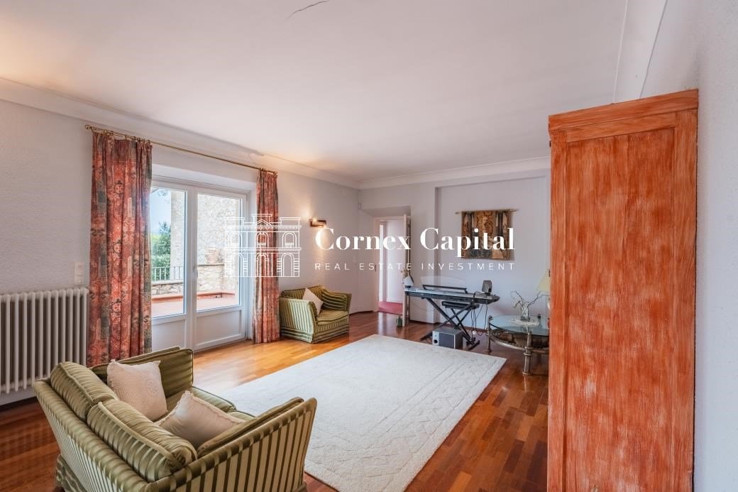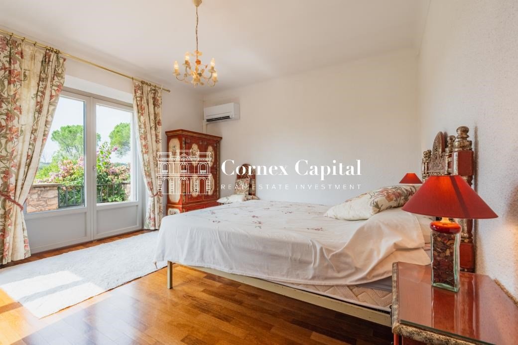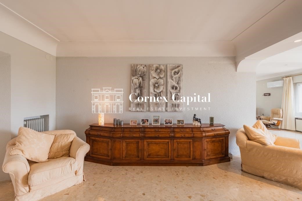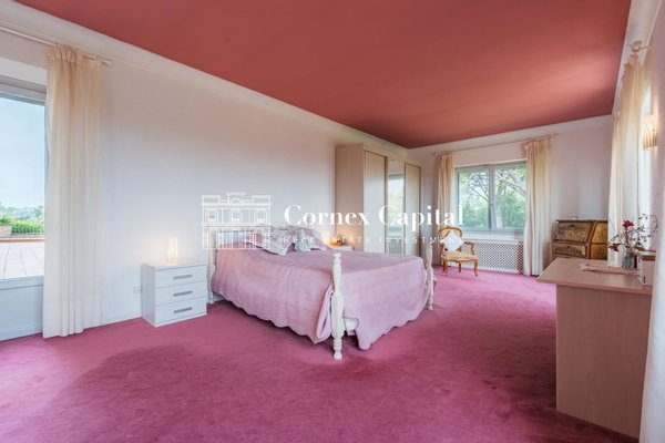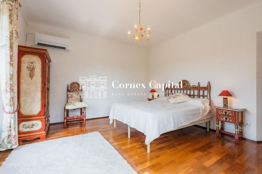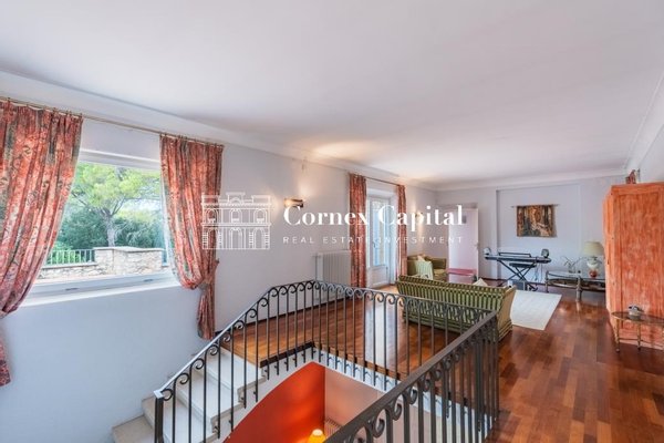 Draußen umgibt ein angelegter Garten mit automatischer Bewässerung den 40 m² großen Pool, der sich perfekt zum Entspannen inmitten der Natur eignet. Darüber hinaus führt ein Panoramaweg an das Anwesen heran, der ideale Orte für private Spaziergänge und Momente der Ruhe bietet.