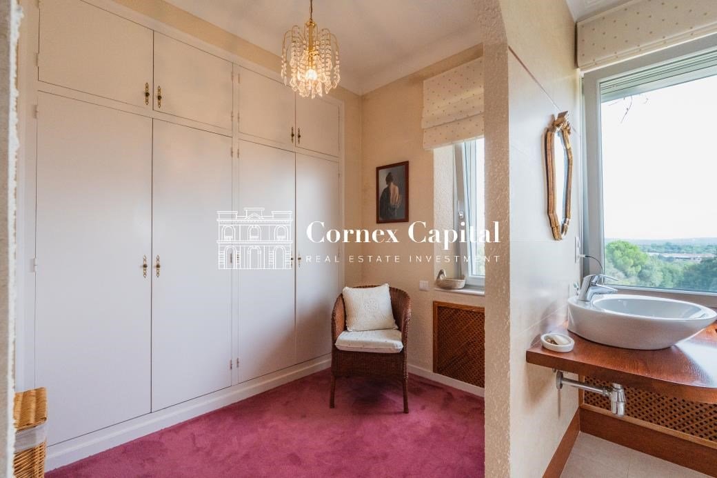 Auf einem Hügel gelegen, garantiert seine privilegierte Lage absolute Privatsphäre und Exklusivität, während es nur wenige Minuten von allen wichtigen Dienstleistungen entfernt ist. Das nach Südwesten ausgerichtete Haus ist lichtdurchflutet und verfügt über fünf geräumige Schlafzimmer mit eigenem Bad und Ankleidezimmern sowie einen Fitnessraum und einen vielseitigen Hobbyraum, der in ein sechstes Schlafzimmer umgewandelt werden kann.