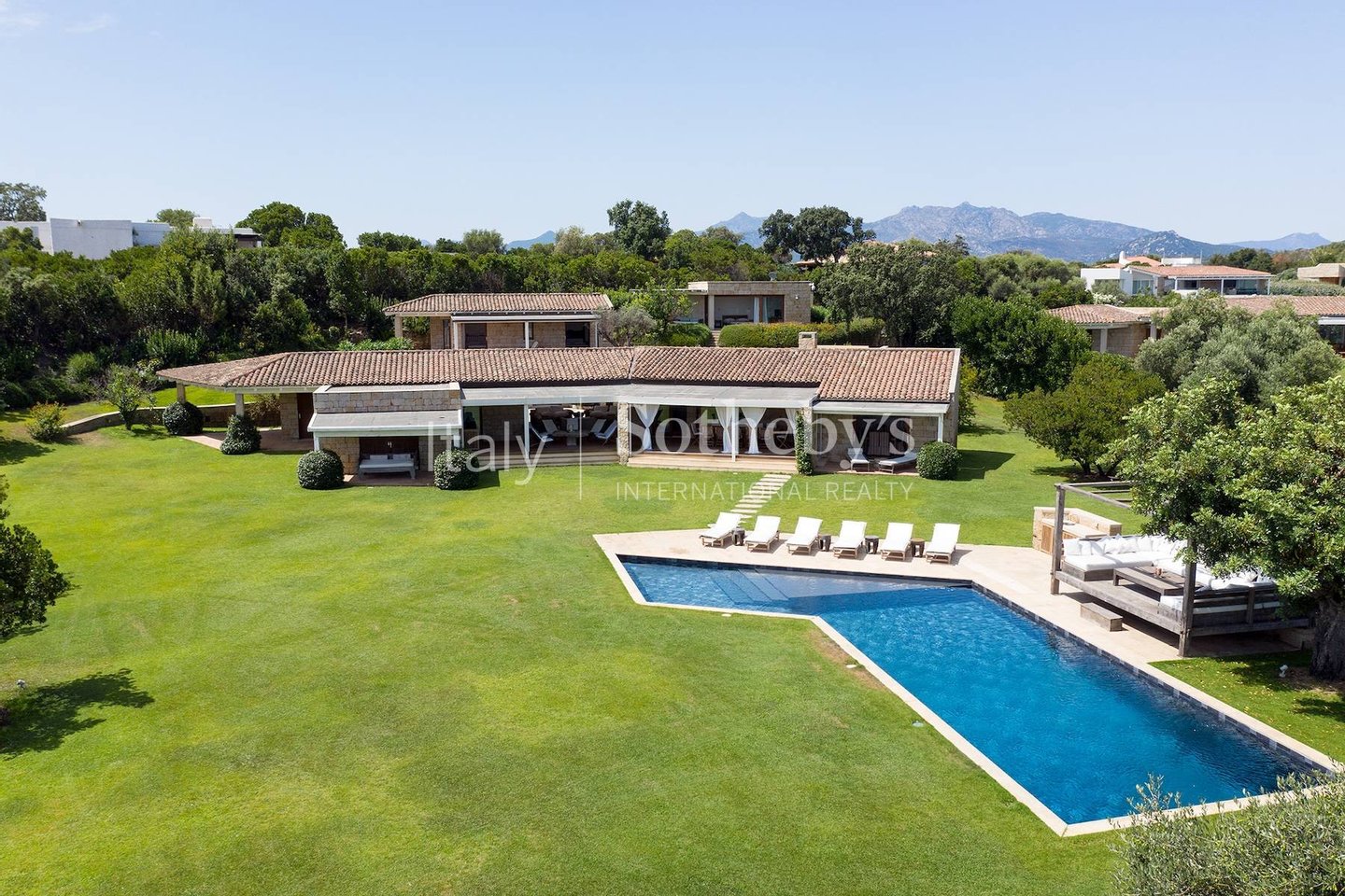 Die Villa liegt günstig in der Nähe des Strandes von Lu Impostu, der über einen Panoramaweg durch die Anlage erreichbar ist und direkt zum Hotel Baglioni führt. Ein großer Pool mit einem balinesischen Bett bietet an heißen Tagen eine erfrischende Oase - perfekt für sommerliche Entspannung.