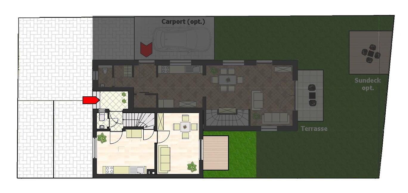 - Charakteristik eines Reihenmittelhauses durch den eigenen Eingang