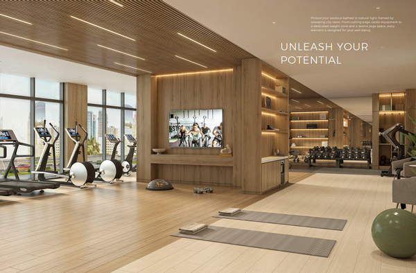 Für Ihre Fitness und Ihr Wohlbefinden steht Ihnen ein voll ausgestattetes Fitnesscenter zur Verfügung, sowie ein Yoga- und Stretchdeck für entspannende Übungen. Im Clubhaus und im Gemeinschaftsraum können Sie Zeit mit Ihren Nachbarn verbringen und den BBQ-Bereich für gesellige Abende nutzen. Die liebevoll gestalteten Gärten und der Kinderspielplatz laden zum Entspannen und Spielen ein.