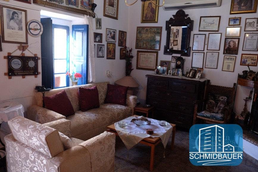 Dieses freistehende Haus in Pombia, Heraklion, ist eine ausgezeichnete Wahl für alle, die Komfort und traditionellen Charakter inmitten eines traditionellen Dorfes suchen. Es handelt sich um ein zweistöckiges Gebäude mit einer Gesamtfläche von 179 m² auf einem 283 m² großen Grundstück, das sich durch seine Steinkonstruktion und die authentische kretische Atmosphäre auszeichnet. Das Haus verfügt über große, helle Räume, wobei die Schlafzimmer besonders komfortabel und funktional sind. Im Wohnzimmer dominiert der traditionelle Kamin, der an Wintertagen eine warme und einladende Atmosphäre schafft. Küche und Hauswirtschaftsräume sind ergonomisch gestaltet und erfüllen die täglichen Bedürfnisse einer Familie. Ein großer Vorteil des Anwesens ist der großzügige Innenhof und die Außenbereiche, die sich ideal zum Entspannen, Gärtnern oder für die Unterhaltung mit Freunden eignen. Von den Balkonen und Terrassen genießt man einen wunderschönen Blick auf das Dorf und das Tal. Die traditionelle kretische Landschaft bietet Ruhe und Frieden. Das Haus verbindet traditionellen Charakter mit Funktionalität und ist somit die ideale Wahl sowohl für einen dauerhaften Wohnsitz als auch für ein Ferienhaus im Herzen von Messara.