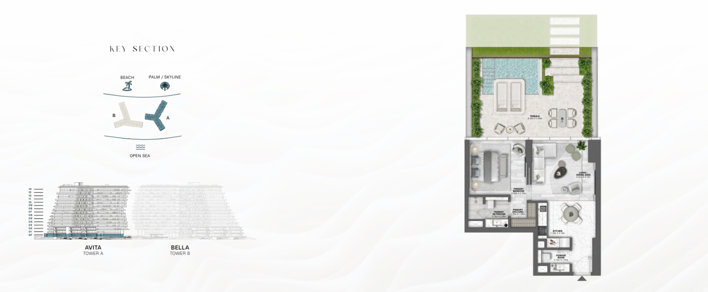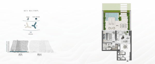 Willkommen in Ihrem eigenen Luxus-Refugium! Diese exklusive 1 Schlafzimmer Wohnung bietet Ihnen alles, was Sie für Resort & Entspannung brauchen. Ein privater Strand liegt nur 250 Meter entfernt und lädt zum Entspannen in Cabanas oder auf Sonnenliegen ein. Drei verschiedene Pools stehen zu Ihrer Verfügung, darunter ein Infinity-Pool auf dem Dach mit atemberaubendem Blick auf die Skyline. Ein Luxus-Spa mit Dampfbad, Sauna und Behandlungsräumen sowie ein Wellness-Pavillon für Fitness, Yoga und Meditation sorgen für Ihr Wohlbefinden.