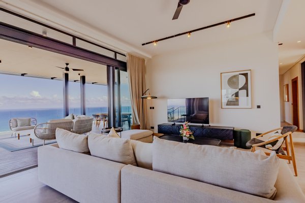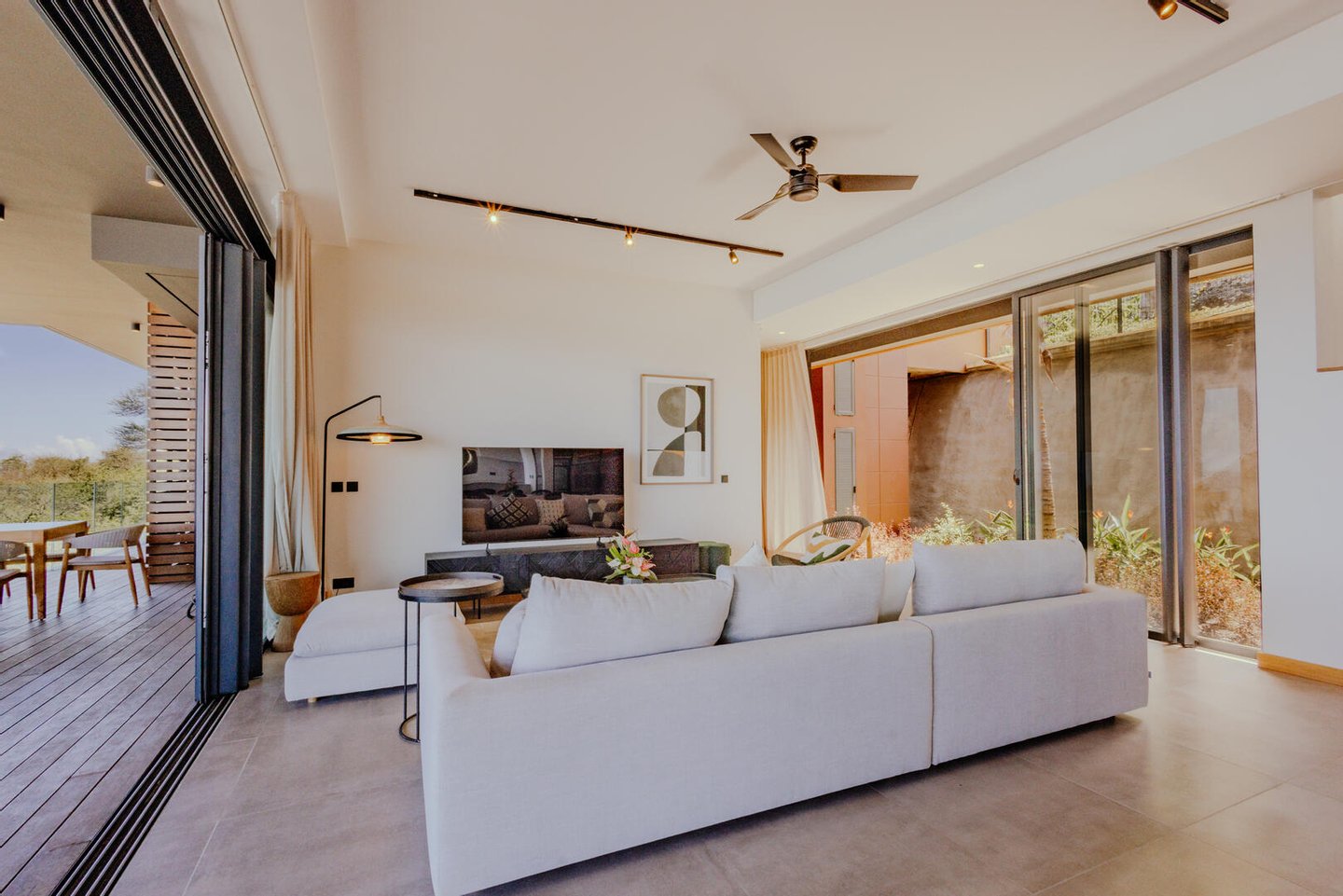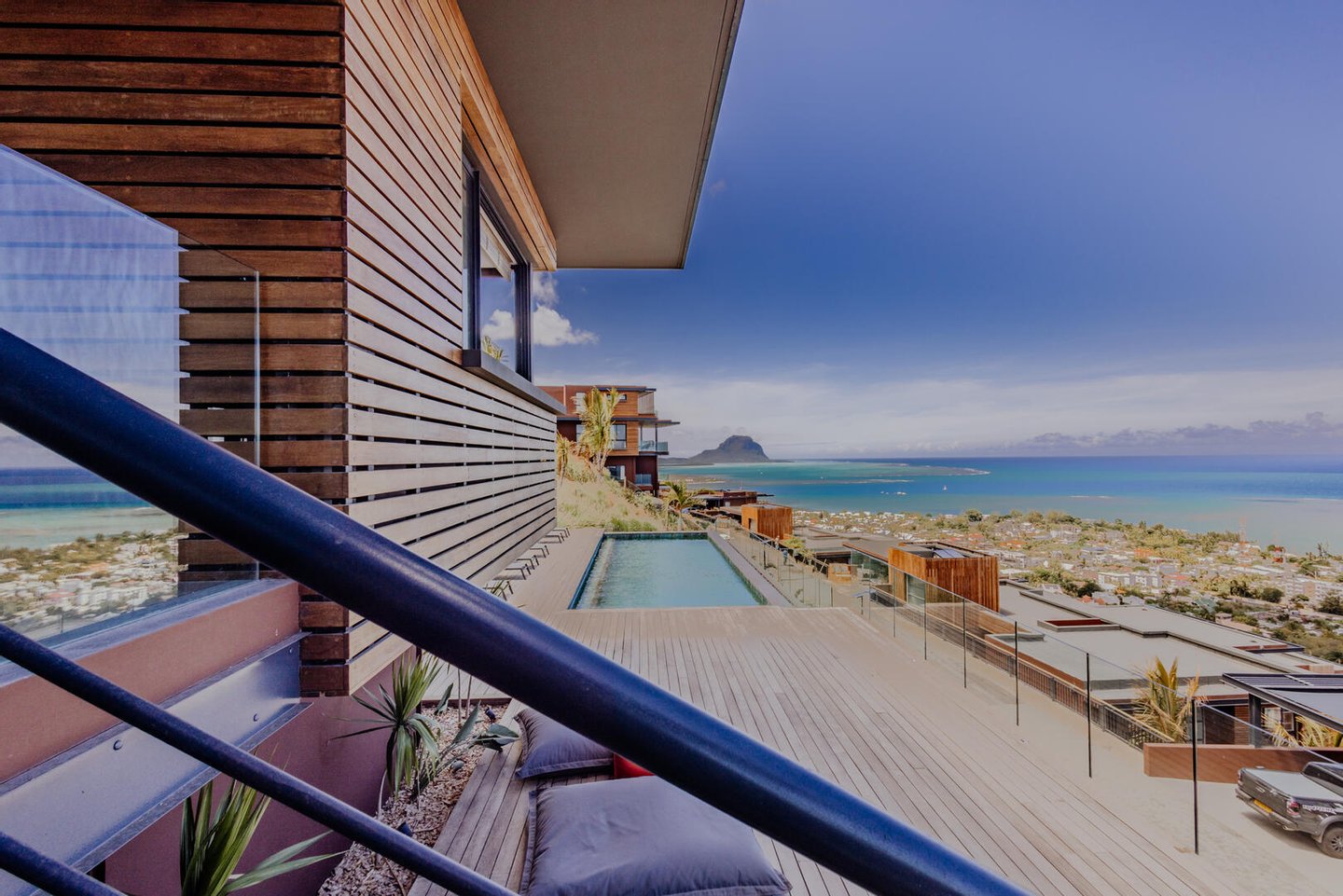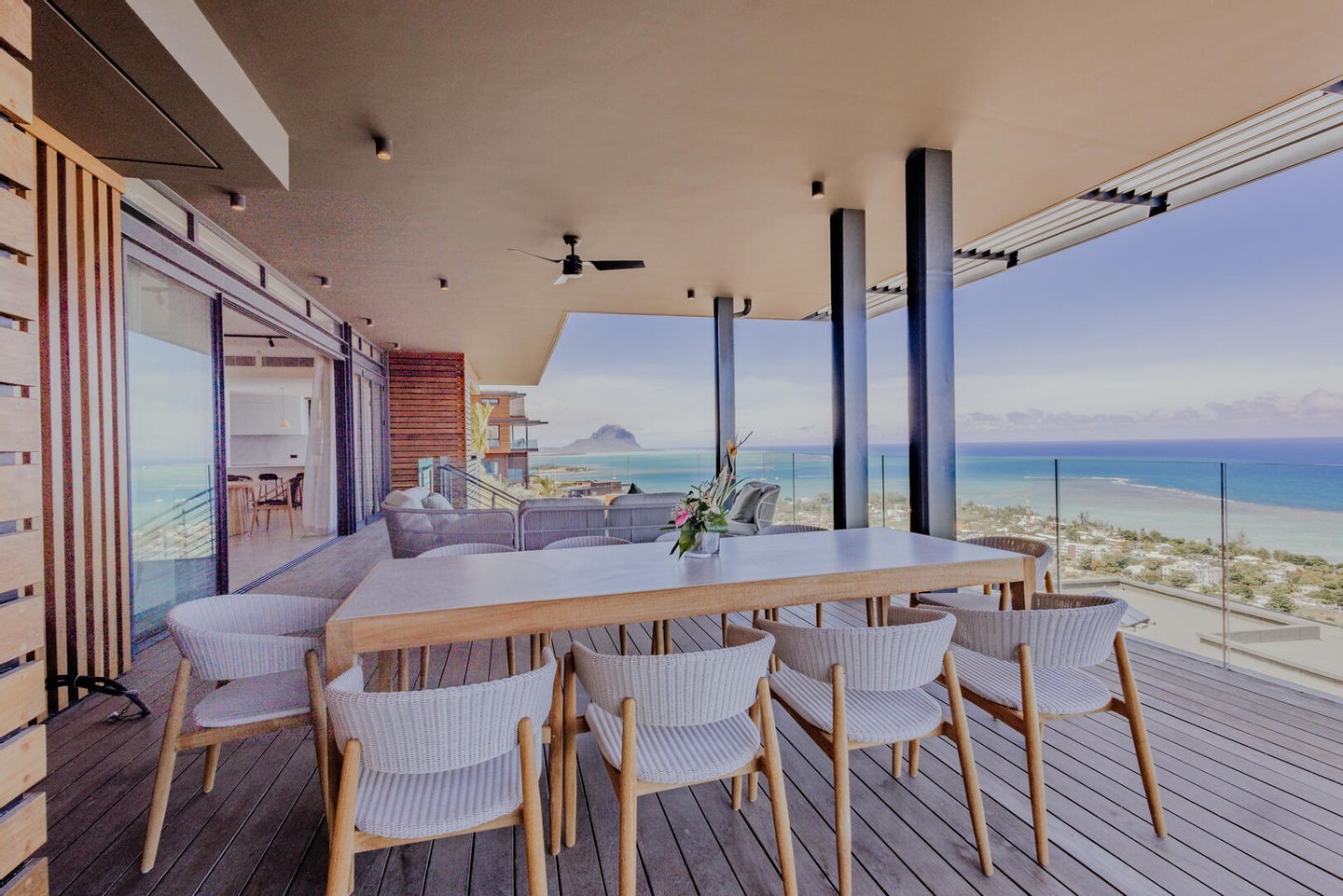 Erleben Sie das faszinierende Spektakel des Indischen Ozeans, während Sie sich in Ihrem luxuriösen, sorgfältig gestalteten Apartment bei einem erfrischenden Cocktail entspannen und die Essenz von Mauritius und die berühmten Sonnenuntergänge der