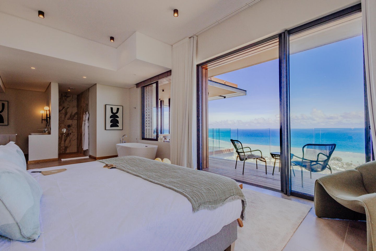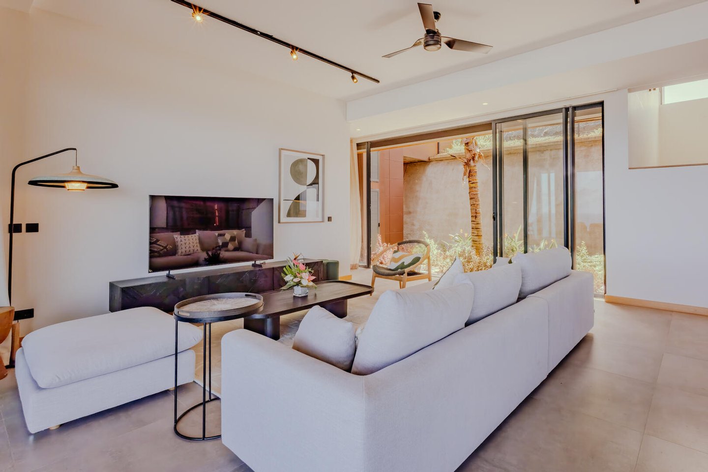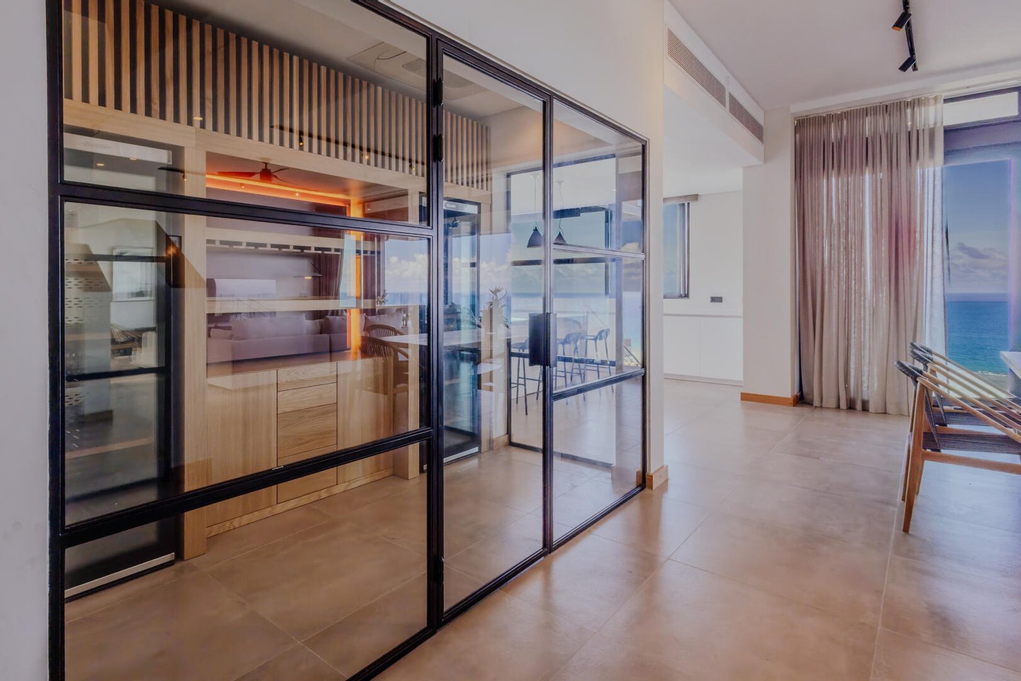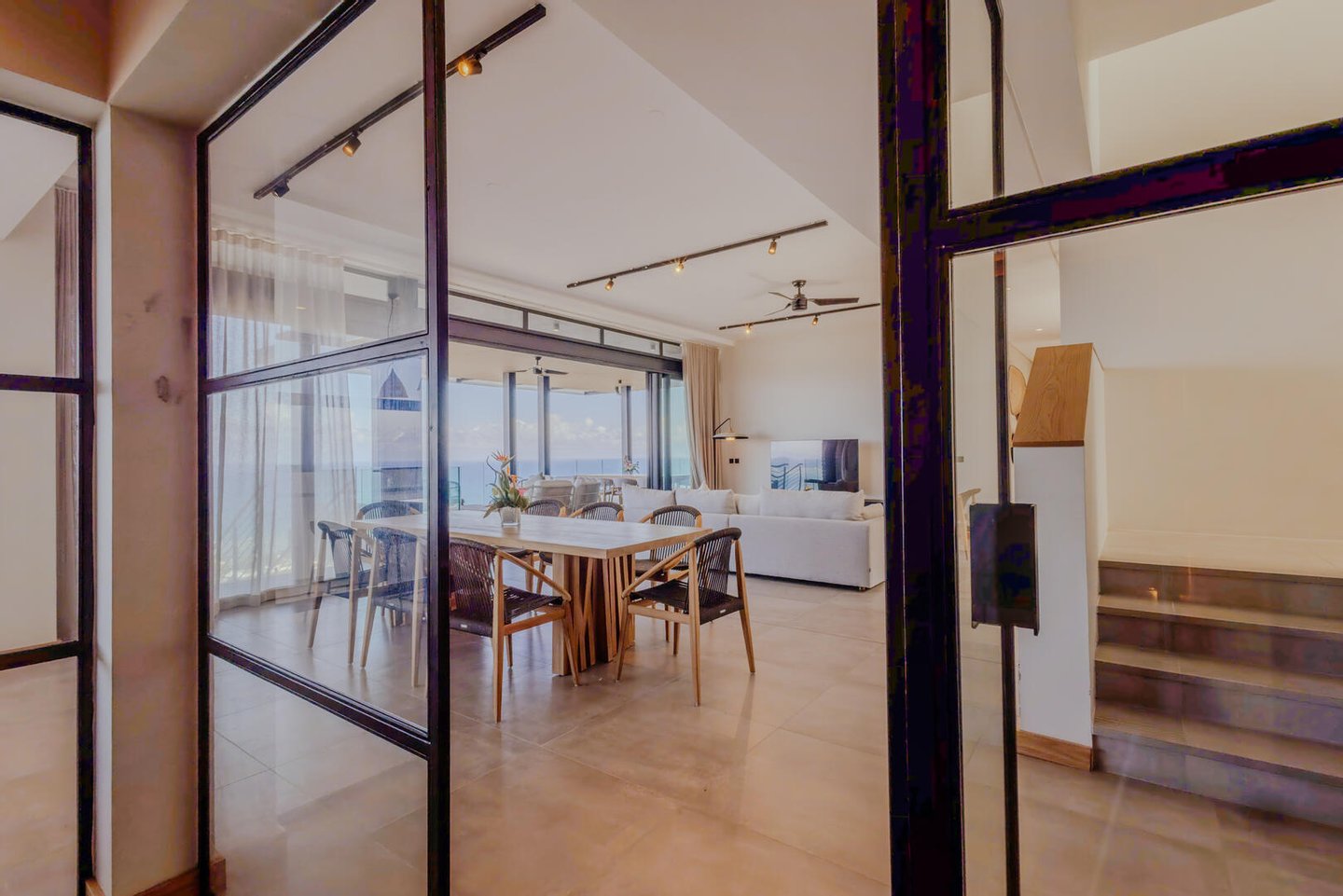 Erleben Sie das faszinierende Spektakel des Indischen Ozeans, während Sie sich in Ihrem luxuriösen, sorgfältig gestalteten Apartment bei einem erfrischenden Cocktail entspannen und die Essenz von Mauritius und die berühmten Sonnenuntergänge der