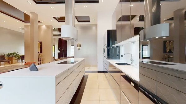 ++ Die exklusive Einbauküche überzeugt durch 5-fach lackierte Fronten und eine hochwertige Ausstattung. Sie umfasst einen Liebherr Side-by-Side Kühl- und Gefrierschrank, ein Gaggenau Vollflächeninduktionskochfeld sowie Mielegeräte wie Backofen, Einbaukaffeemaschine, Mikrowellenofen und zwei Geschirrspüler.