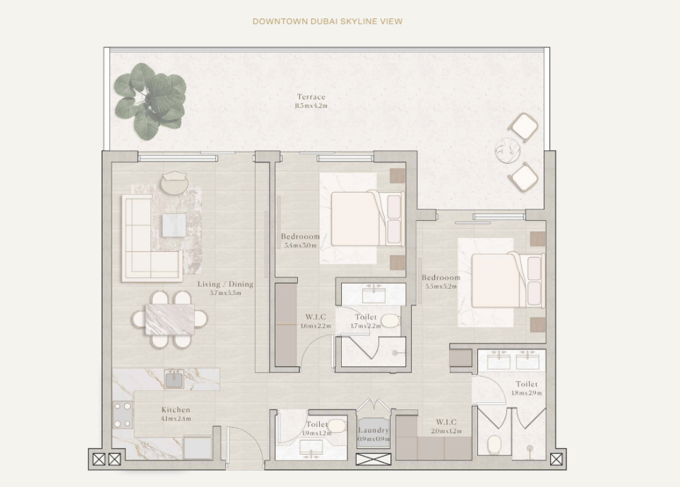 Willkommen in Ihrem zukünftigen Zuhause in den Emerge Residences! Beim Betreten dieser stilvollen 2-Zimmer-Wohnung werden Sie vom modernen Design und der hochwertigen Ausstattung begeistert sein.