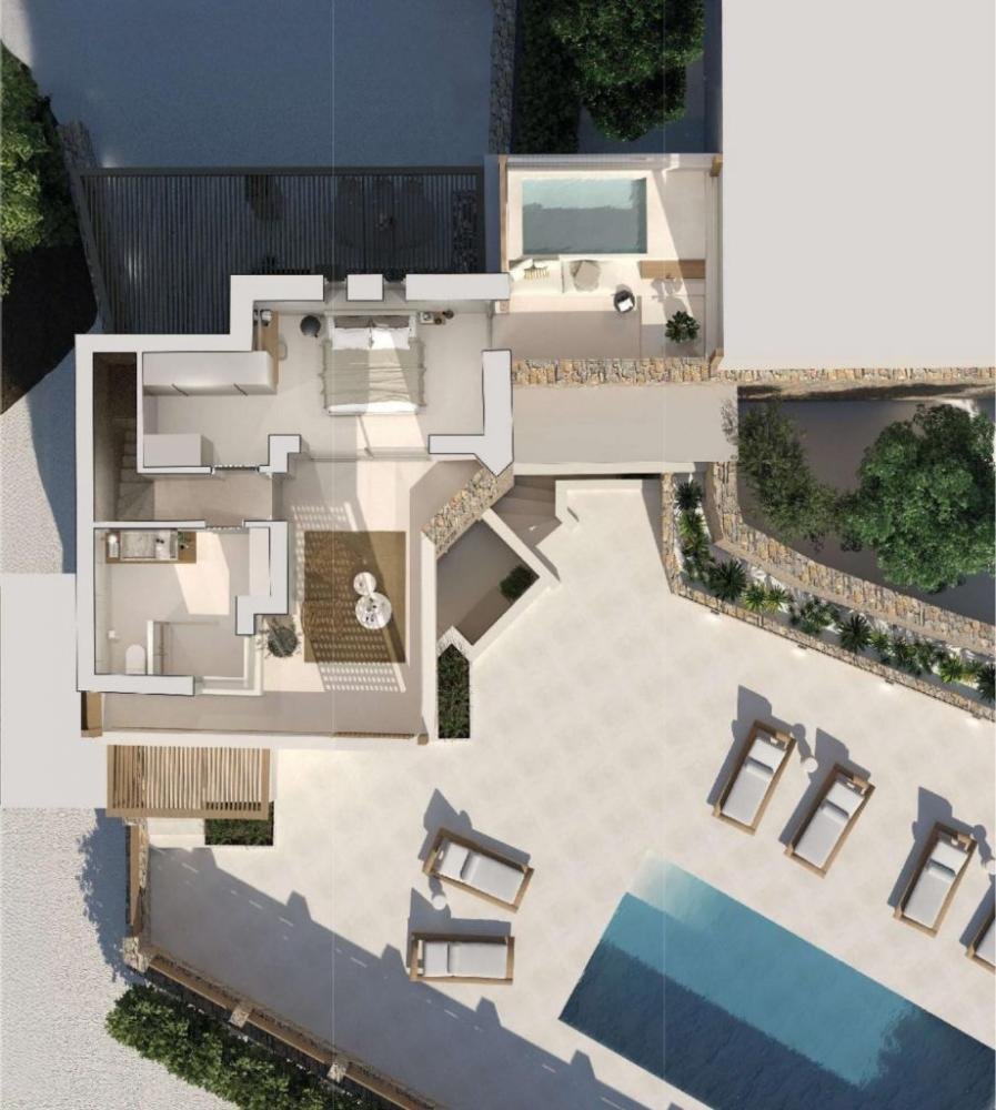 Diese außergewöhnliche Villa verbindet moderne Architektur mit natürlicher Schönheit und bietet den ultimativen mediterranen Rückzugsort nur wenige Minuten vom Strand entfernt.