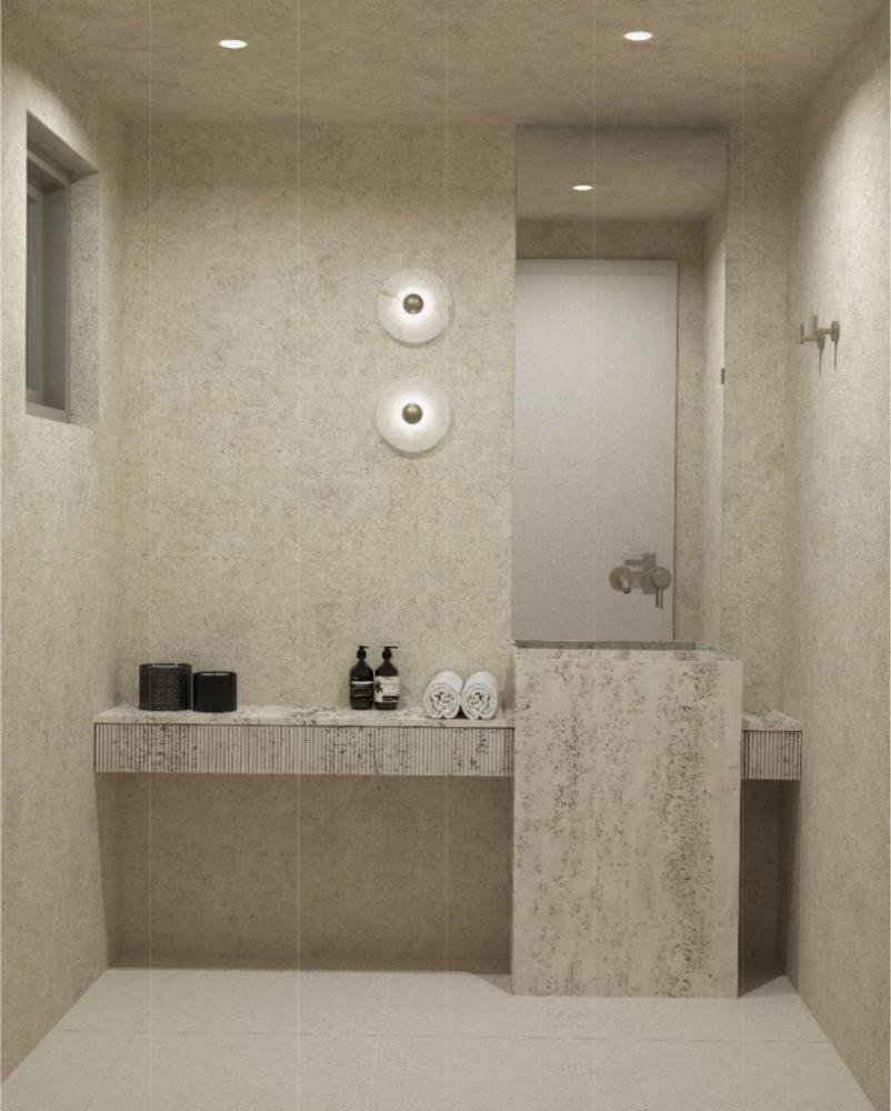 Beide Schlafzimmer verfügen über ein eigenes Badezimmer mit Dusche, Waschbecken und Toilette.
