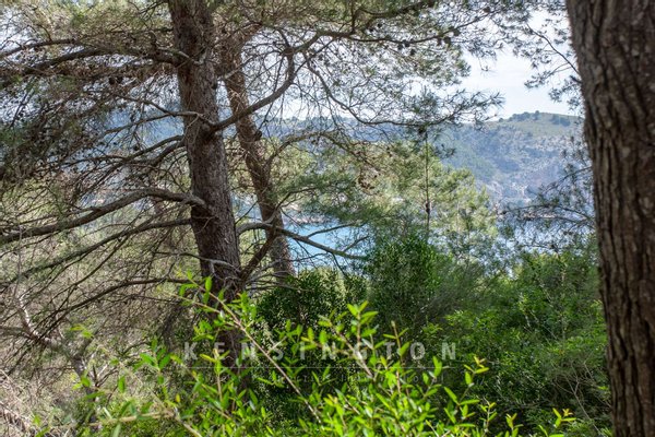 Das circa. 875 m² große Grundstück befindet sich in Hanglage in einem der attraktivsten Wohngebiete Mallorcas. Das Grundstück verfügt über einen wunderschönen Landschaftsblick. Wendet man den Blick zur Seite, erkennt man das Meer, die Bucht und die