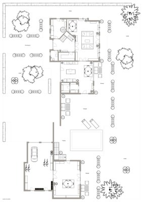 Das Hauptgebäude überzeugt mit einem durchdachten Sicherheits- und Komfortkonzept: vollständige Außenbeleuchtung, Kameraüberwachung im Erdgeschoss und Außenbereich, alarmgesicherte Fenster und Türen, Außensirene sowie einbruchsicheres 3-fach-Glas in der Küche. Die übrigen Fenster aus Holz sind ebenfalls 3-fach P4A- sicherheitsverglast, wärmeschutzisoliert und mit Raffstores von Warema ausgestattet, ergänzt durch Fliegenschutzgitter in EG und OG. Hochwertige Details wie brünierte Stahlfensterbänke, maßgefertigte Industrieloft-Türen, Echtholzboden „Eiche antik“ von Kährs und rahmenlose Innentüren unterstreichen den exklusiven Charakter.